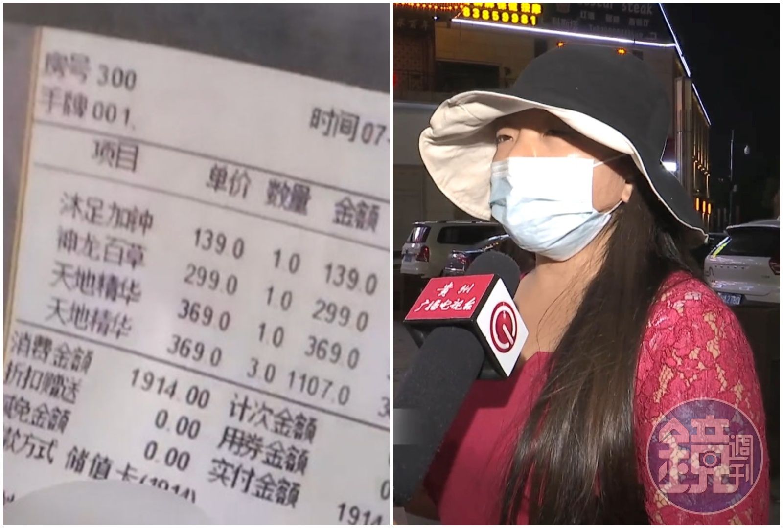 大陸貴陽的木姓女子表示,自己在檢查老公帳單時,發現老公11日晚上10點多光顧了一家足療店,僅僅2小時的時間,消費金額卻高達人民幣1,914元。帳單上還記錄老公的消費項目有「神龍百草」「天地精華」等服務,按照價目表計算的話,全套做下來也要6、7個小時,但老公表示自己當天晚上12點結束足療後,就去KTV唱歌了,還秀出KTV的發票,所以木女質疑是店家亂打帳單,把消費者當肥羊。