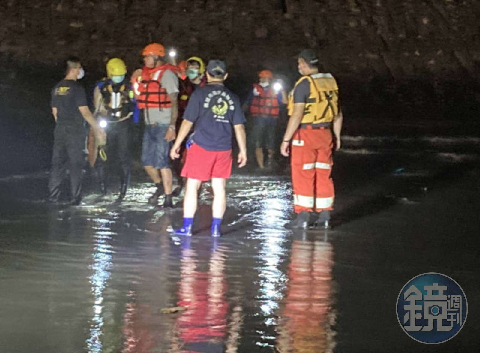 警消尋獲李男的遺體。(翻攝畫面)在岸邊守候一整晚的李妻和親友,原本希望能有奇蹟出現,不斷呼喊李男和男童,結果令人遺憾;李妻情緒崩潰跪地撫屍,更撕心裂肺哭喊:「怎麼會這樣?」情景令人相當鼻酸。