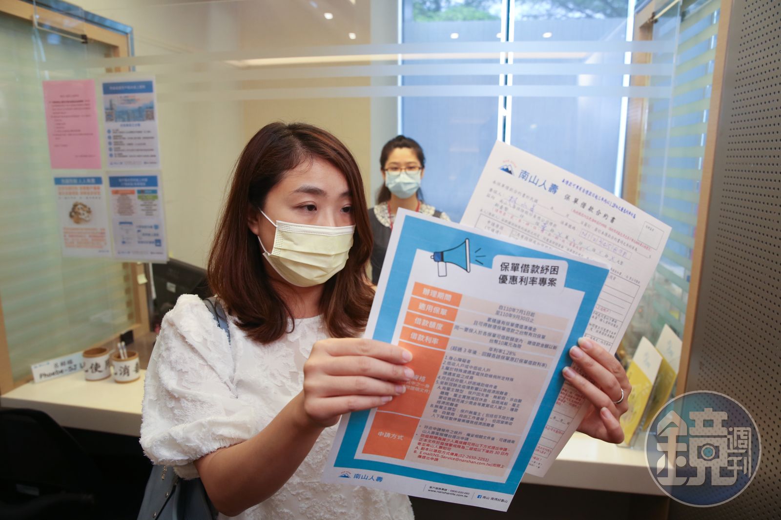 - 保單借款:壽險公司決定自7月1日起,開辦經濟弱勢保戶保單借款利率優惠方案,申請人於每家投保的壽險公司申請額度累計最高以新台幣10萬元為限,適用利率為年利率1.28%,優惠利率期間為3年。葉俊佑提醒,有保價金的壽險、年金險才能辦理保單借款,醫療險、意外險則不行,「如果有買2家,就可以各借10萬元。」