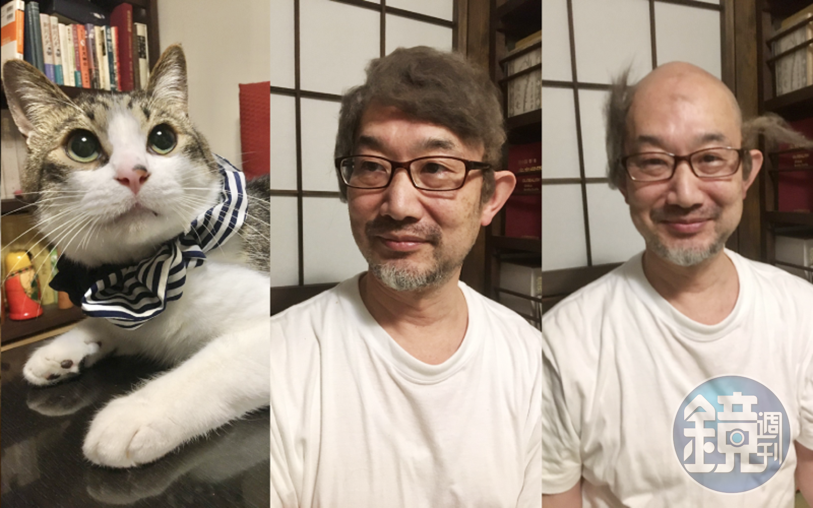 在學校工作的日本大叔山口隆之,家中飼養了5隻貓,每次替牠們梳毛都梳下大量的貓毛,日前突發奇想,隨意將大量貓毛放在他的光頭上假裝頭髮,老婆看到後就說:「要弄的話就認真點吧!」他就開始認真將貓毛搓成假髮的樣子,還變換出不同造型且各有主題,他將照片上傳推特,並且還在留言備註供貨來源主要是虎斑貓彥之助,但他戴貓毛假髮的感想是「也太熱啦!」