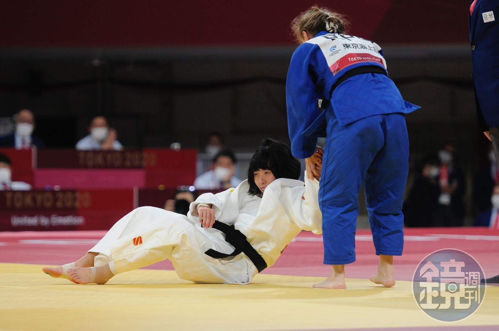 柔道女將李凱琳遭對手取得「一本」,最後以0比10落敗。(體育署提供)發布時間:2021.08.27 17:06 臺北時間