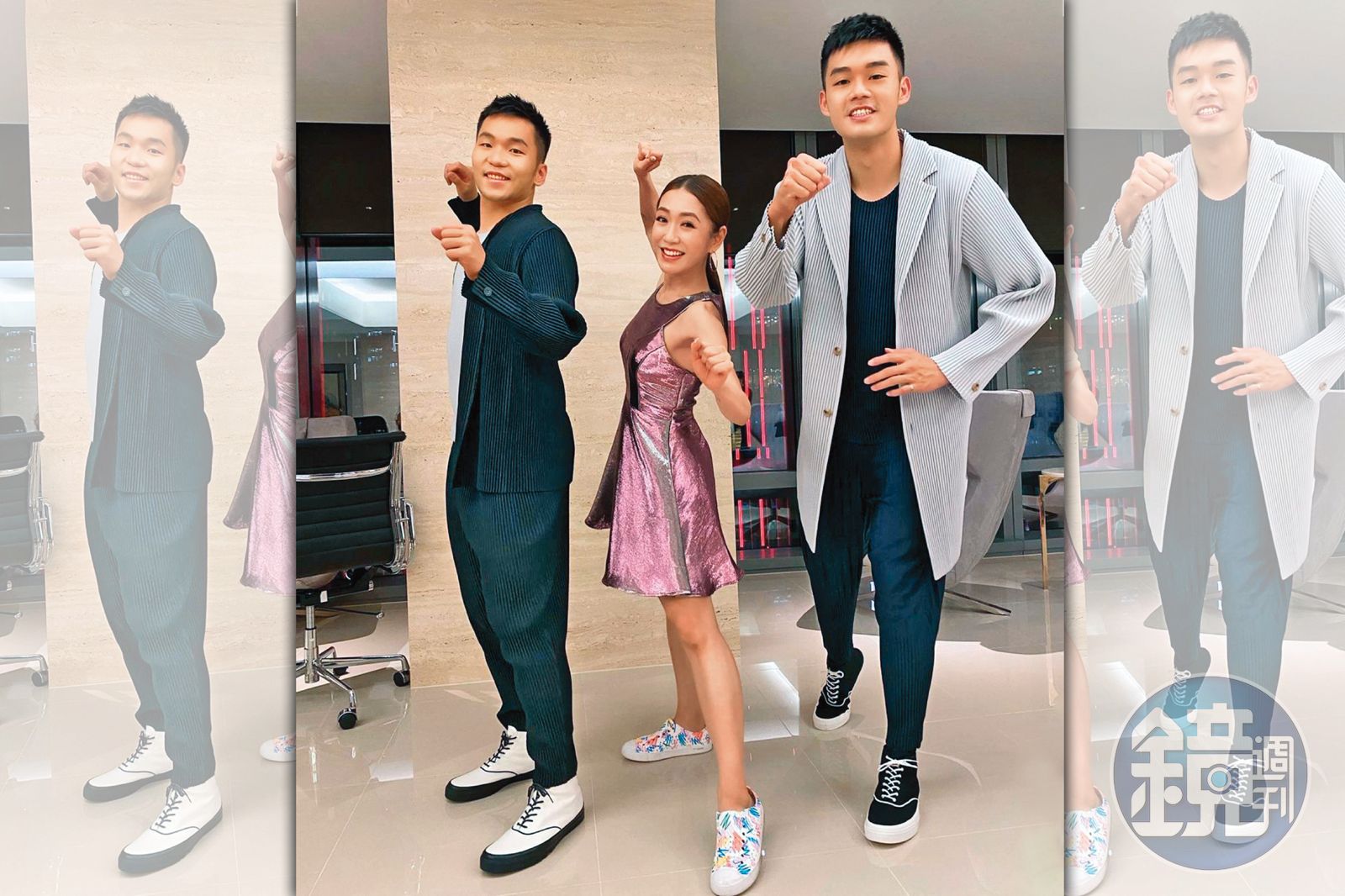 王齊麟(右)、李洋(左)和主持人楊千霈(中)組成一日限定「麟洋霈」。(翻攝自楊千霈IG)