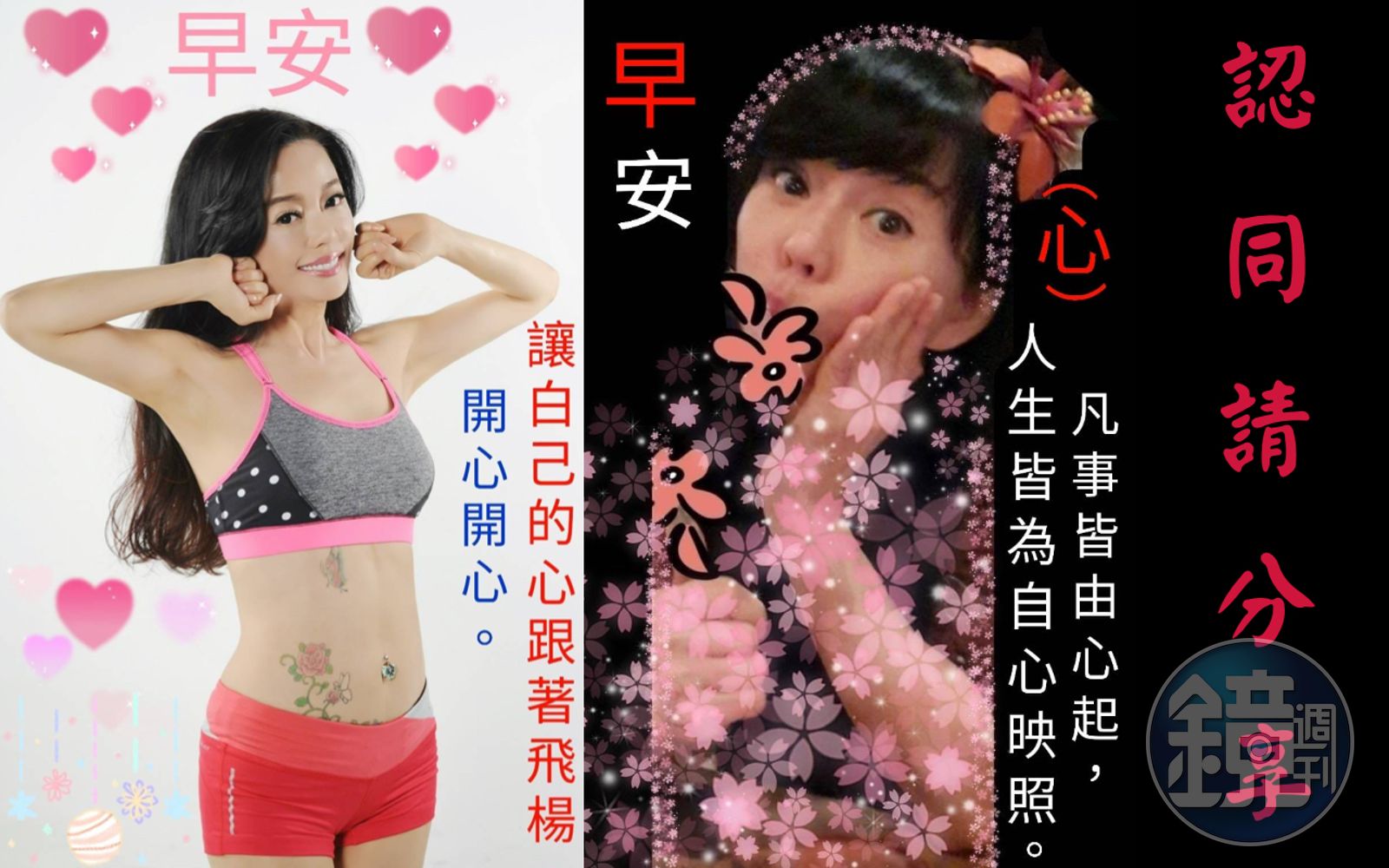 孫安佐爆料母親狄鶯每天都在寄送長輩圖,更猛的是,這些長輩圖的主角不再是蓮花、佛祖,而是狄鶯跟本人!只見狄鶯穿著小可愛熱褲,大方展現「長輩」(奶奶)與蠻腰,並加註「讓自己的心跟著飛揚」等勵志小語。
