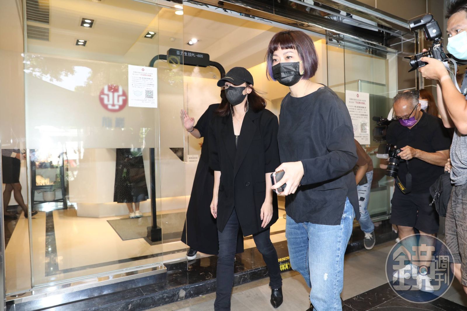 賈靜雯(左)一大早就到龍劭華靈前弔唁。發布時間:2021.09.18 15:01 臺北時間