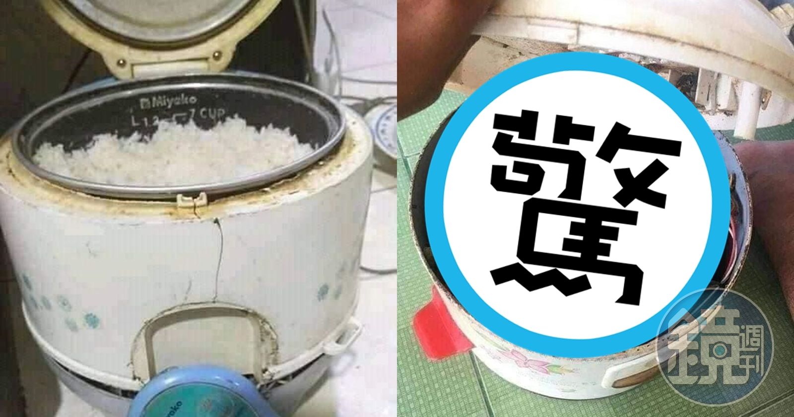一名網友在臉書社團「爆廢公社公開版」貼出4張照片,只見老舊的電子鍋中有整鍋煮好的白飯,但拆開鍋子,內部卻有滿滿的壁虎乾屍,跟電線糾纏在一起,讓原PO打趣表示,阿嬤煮的飯就是特別香,「有燒肉的味道」。