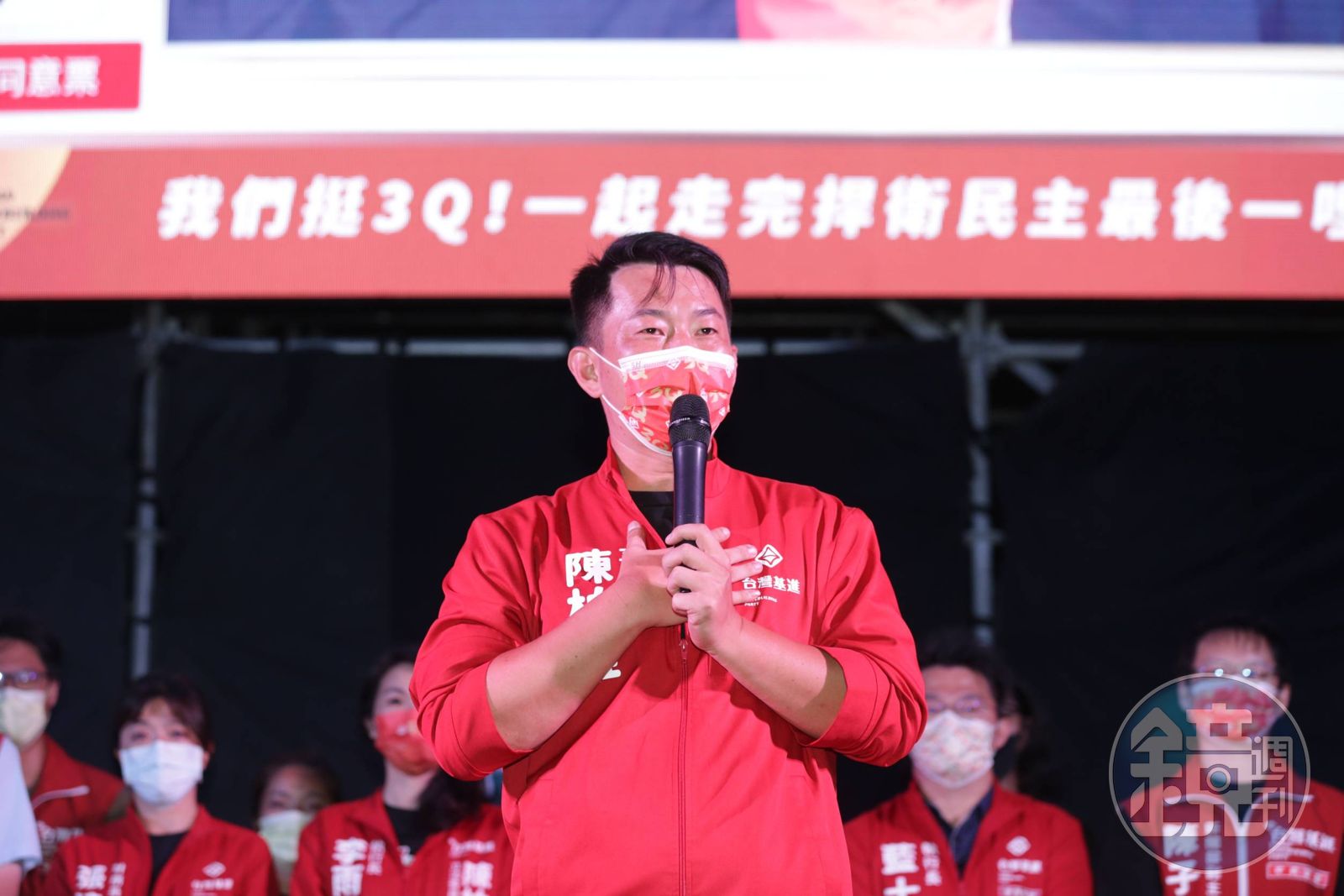 陳柏惟上台發表演說,坦承努力不夠,感謝大家的支持。陳柏惟表示自己其實不愛哭,是新聞都亂寫。不論輸贏,都希望傳承政治經驗、台灣文化,這一路很感謝支持者們。