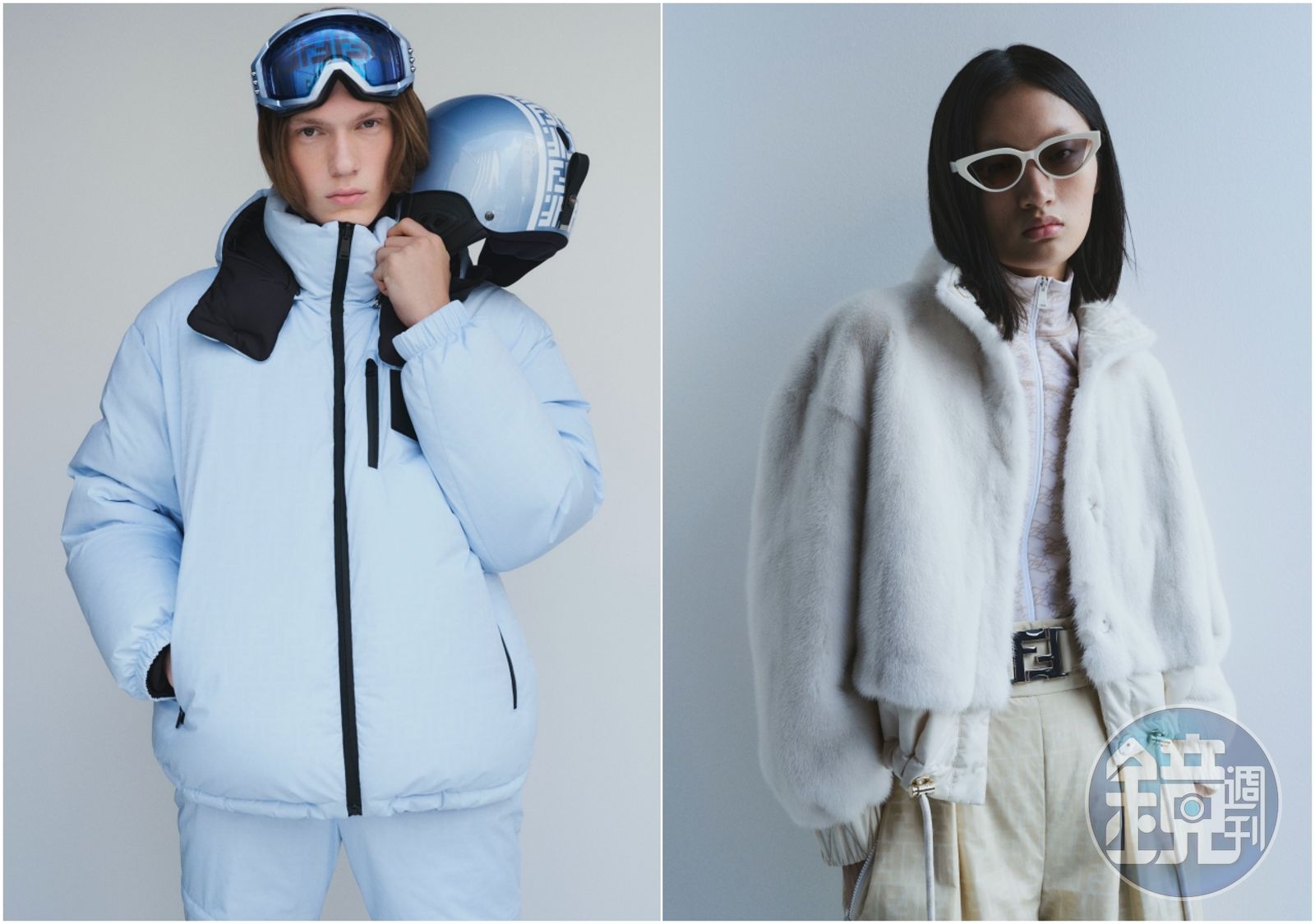 在國外已然接近了滑雪的季節啊!因此精品品牌陸續推出滑雪系列,雖然在台灣的我們想出國想到做夢都會笑,然而回台灣得關14天的檢疫手續實在令人卻步....不如下手購入幾件系列單品吧?讓自己在冬日穿著保暖時,也能幻想自己在雪景中的美好與開心。FENDI推出的2021冬季滑雪服限量版Capsule系列,以淺藍色、白色和黑色作為主色調,並以再生永續特性堅守時尚的環保承諾。