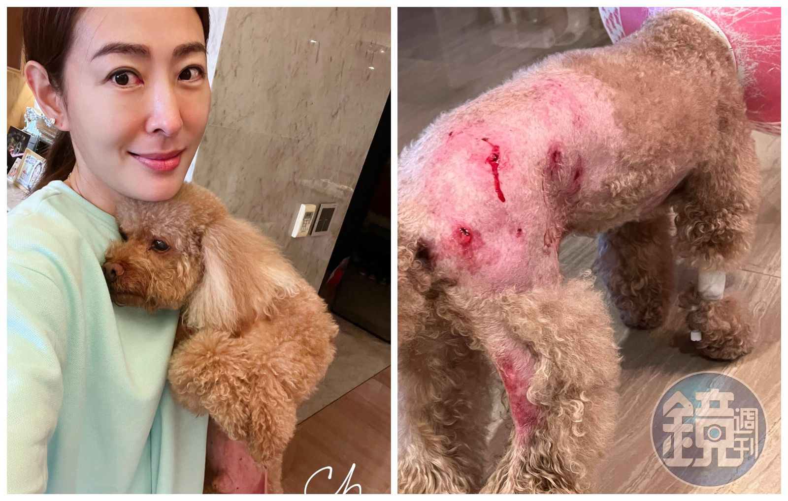 賈永婕今在臉書交代Q比受傷後續,她心疼表示,獸醫為Q比進行輕度麻醉清創,牠身上的傷比想像中嚴重,4個比較嚴重的傷口在背部,其中2個比較深,後腿也被咬,沒想到前下腹側也有咬到,好險傷口不深,但身上也有多處瘀青,「Q比真的嚇到了,一直哀嚎」。