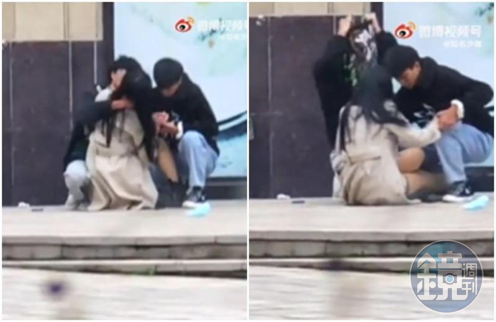 這段短短39秒的影片讓眾人看了目瞪口呆,畫面中長髮正妹和2名男子蹲在角落,眼鏡男先是撫摸正妹的腰再強行索吻,但女方甩頭抗拒,不料眼鏡男狂賞自己巴掌,下秒又把嘴嘟上去進攻,正妹和一旁的黑衣男趕緊把眼鏡男推開。沒想到眼鏡男突然暴走脫衣,黑衣男看不下去也加入戰局,最後演變成2男搶1女的狗血畫面,一旁無奈的正妹也任由2男擺布。