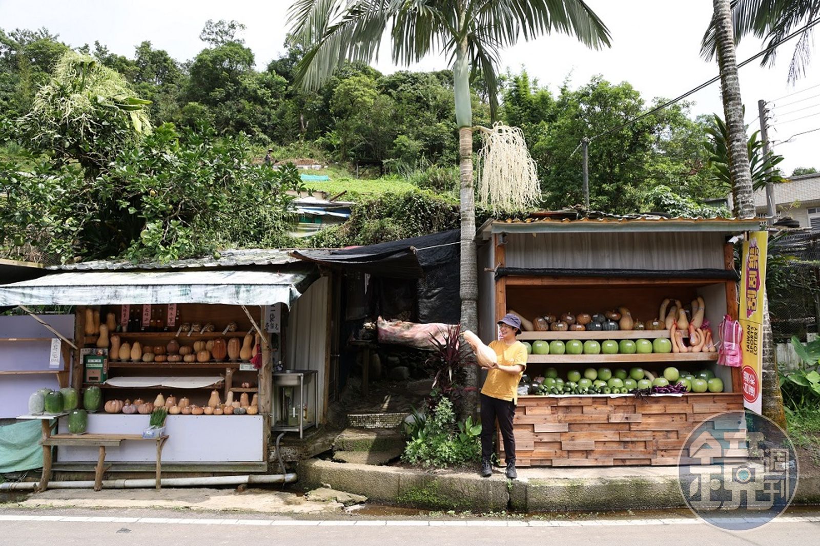藏身前往虎豹潭的山間道路中,有條極少人知道的神奇街道,Google map難以定位,但整條街彷彿約定好,在自家門口設計出各自獨立,專供過路人自己買菜、投幣的「無人菜攤」。