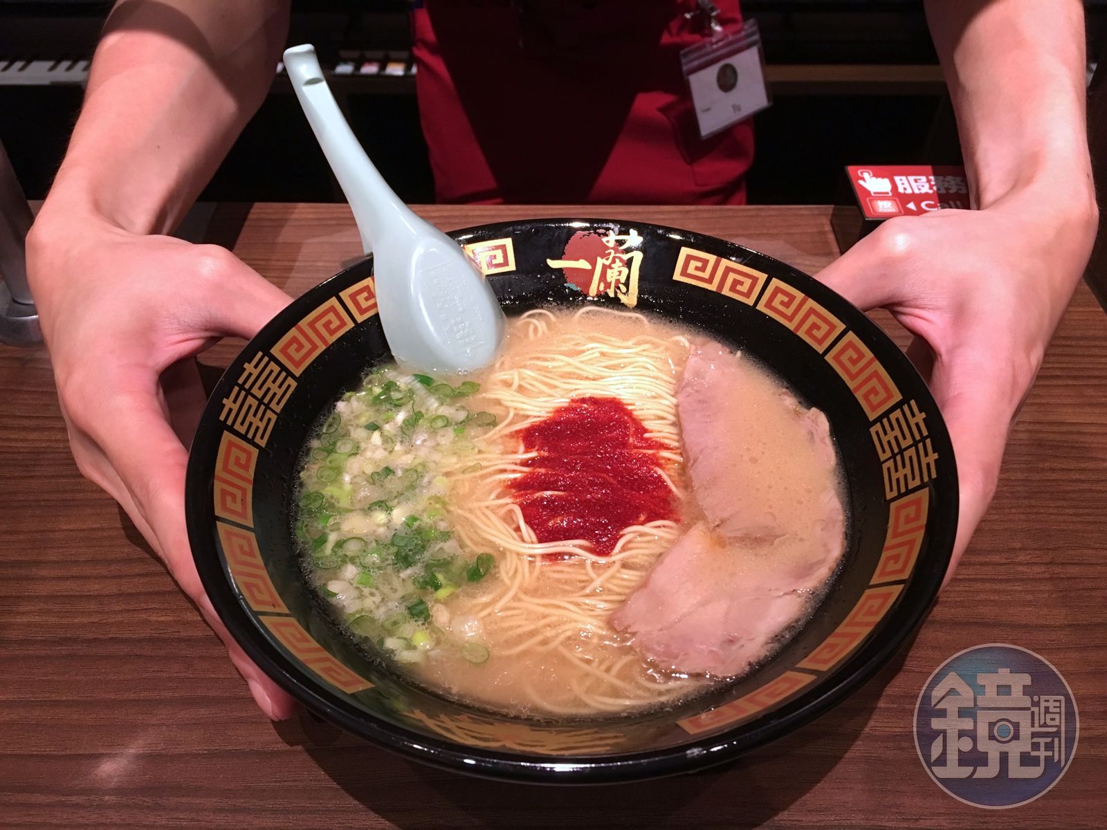 口味依舊專一,只有「天然豚骨拉麵」。乳白色的豚骨湯頭,香醇、沒有豬腥味,混合多種小麥粉製成的麵條,細滑有Q度,也特別容易吸附湯汁,畫龍點睛的祕製醬,是用30多種辛香料和辣椒製成,能增添整碗麵的香氣層次,叉燒肉片嫩軟香甜。