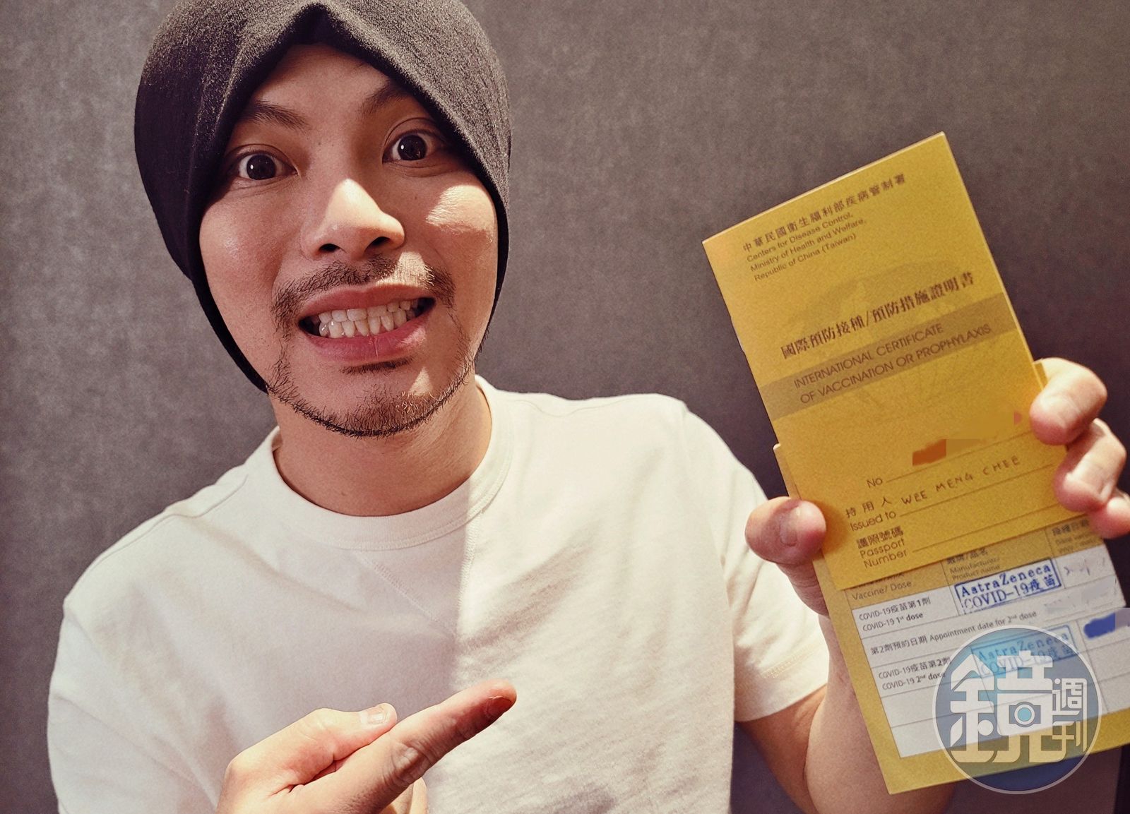 黃明志昨開心宣布在台灣打了兩劑AZ,「我終於領到國際疫苗證照啦!」表示從今年年初開始,就有很多人一直在吵要打什麼品牌的疫苗。「對我們這些苦命、需要到處跑的人來說,除了保護力要高以外,最重要要打越多國家承認的疫苗,那我們才可以到處飛去工作…這才是我們真正的心聲。」
