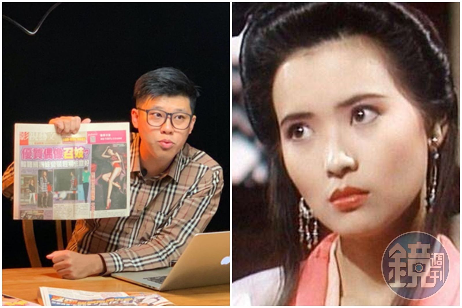 葛斯齊(左)在分享中國任職狗仔的經歷時,直接在節目上透露性侵已逝女星藍潔瑛(右)的大老名字,儘管消音仍被網友們看出是誰。(左圖翻攝自葛斯齊臉書、右圖翻攝自傲笑紅塵推特)發布時間:2021.12.22 14:01 臺北時間