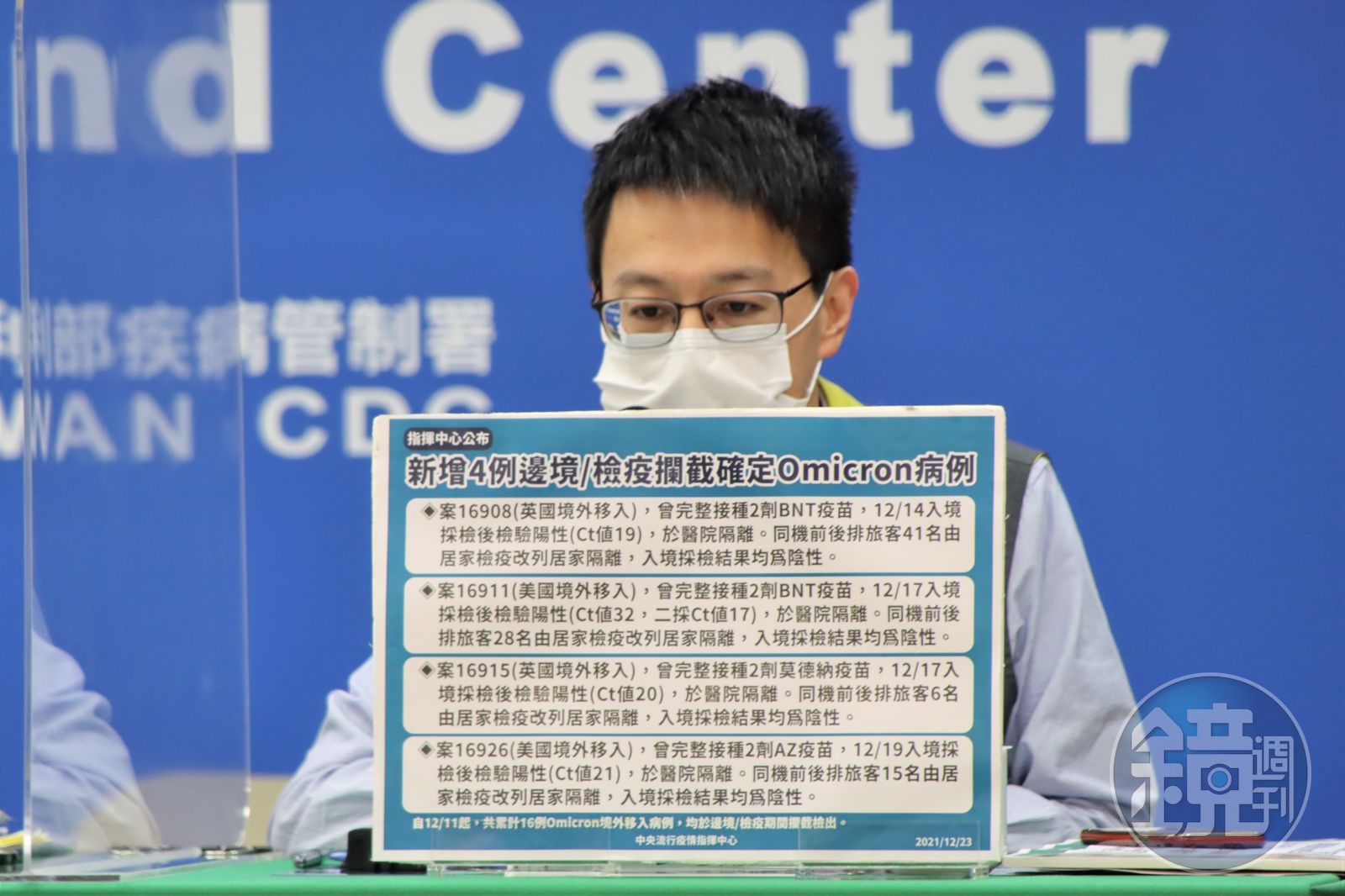 羅一鈞指出,目前16例Omicron病例都是突破性感染,無症狀有7例,輕症有9例,沒有發現嚴重病症。今天公布的4例案16908病毒量較高,Ct值19;案16911第一次採檢時Ct值較高為32,不過二採病毒量高,Ct值19只有17,傳染力比較強。
