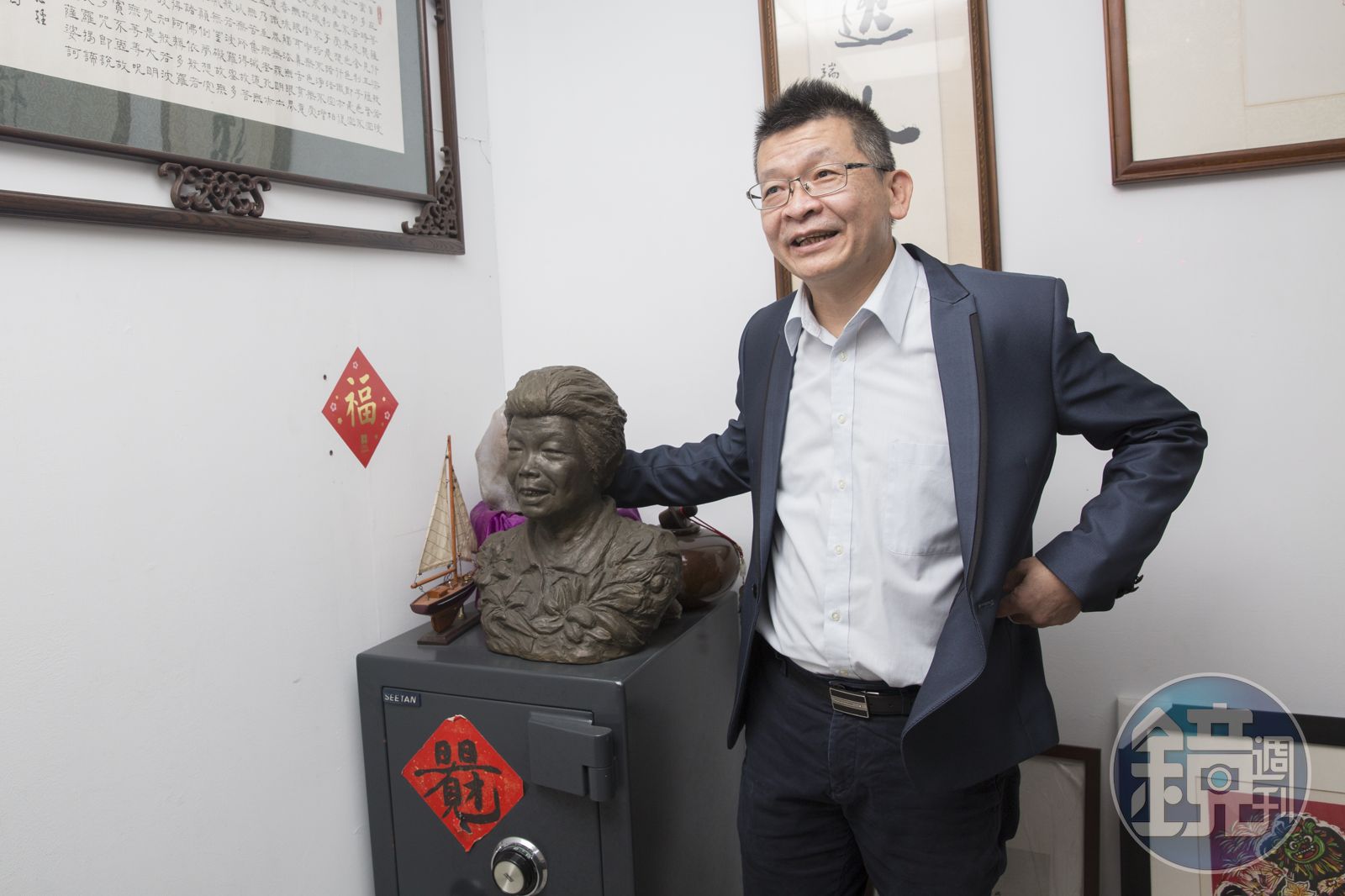 他說,母親現在仍住在彰化祖厝,儘管他平時忙於工作,但每到週末必定回鄉下陪母親一起吃飯。他有些不好意思地說,「我請一位雕塑大師做了她的雕像,這樣我就可以天天看到她。可是這件事不能讓她知道,不然她會生氣哦!」