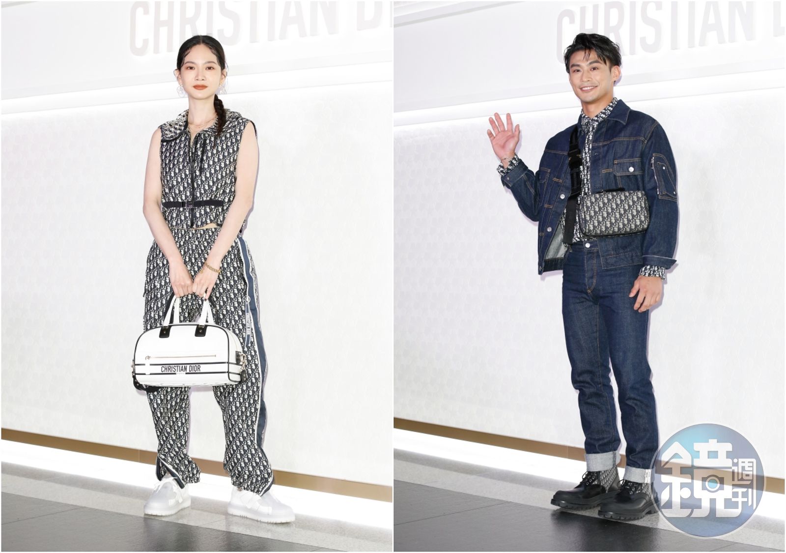 (左起)曾之喬身穿DIOR Oblique塔夫綢緹花背心NT$125,000、長褲NT$78,000、DIOR Vibe白色小牛皮提包NT$135,000、休閒鞋NT$36,000;楊勇緯的丹寧馬鞍夾克NT$50,000、牛仔褲NT$31,000、DIOR Oblique緹花襯衫NT$41,000、斜紋緹花帆布包款NT$66,000、小牛皮靴NT$48,000。發布時間:2022.01.08 07:40 臺北時間