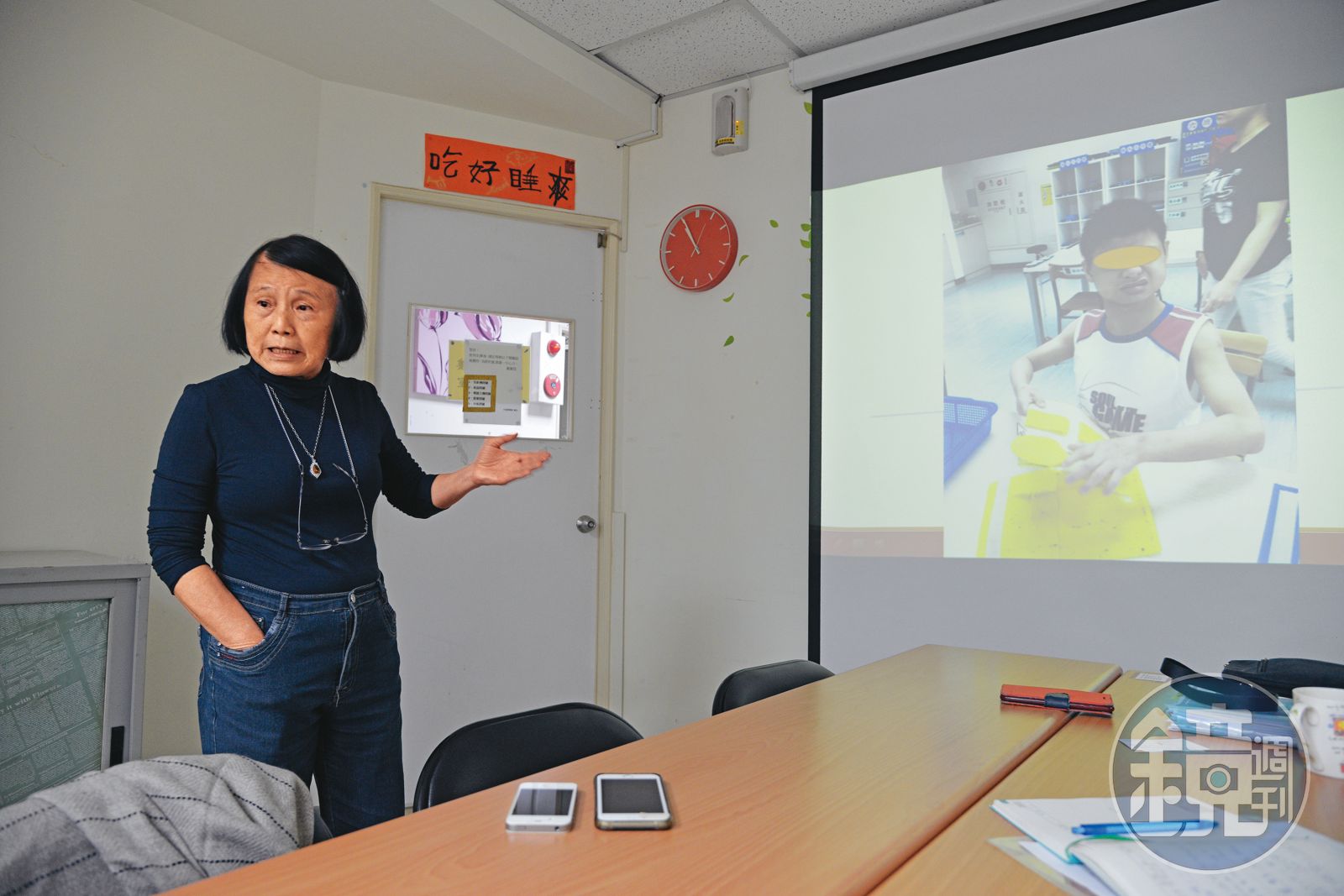於是,「比如我們平常是收一級狀況的,但有些二級、三級的沒地方去,就來我們這。」她說,甚至在南部看過無處可去的自閉兒被家人關在鐵欄裡,「怕傷到別人,吃飯時就把飯放進去。」我們驚訝地問這是多年前的事嗎,她搖頭說是近年。