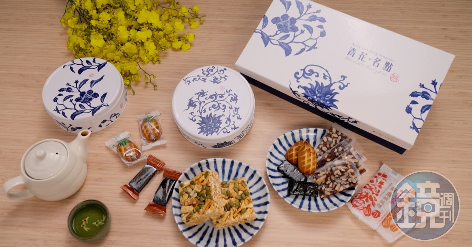 「義美青花.名點禮盒」精選兩款故宮國寶青花瓷,將珍品的精神完美地呈現在禮盒之上。選自明代永樂「青花山茶花紋如意耳扁壺」,盛開的山茶在精工巧妙地繪製下,花朵在平面上展現出立體的遠近之感,搭配勾轉靈活的葉片,整體呈現出隨風搖曳之美;另一款選自清代雍正「青花番蓮紋罐」,以纏枝番蓮花葉為主要裝飾圖樣,大朵盛開的番蓮,以及旋繞蔓生的枝葉滿佔禮盒,無處不透漏著中華民族質樸大方的氣息。