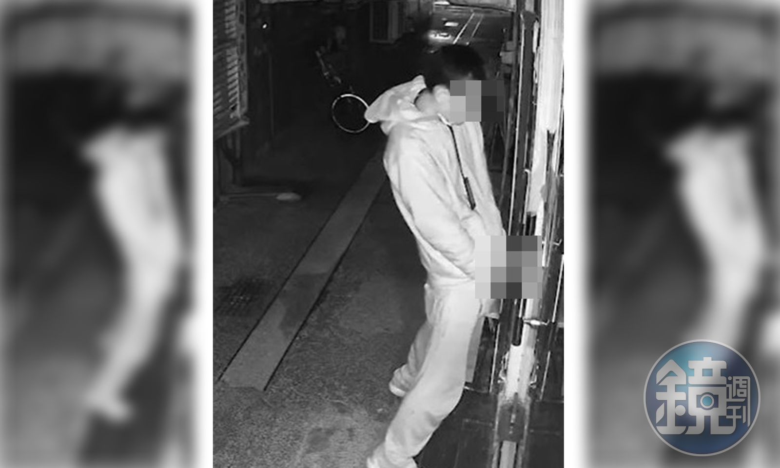 原PO在「爆料公社App」分享一段影片,從畫面中可見,深夜有名戴眼鏡的年輕男子牽著腳踏車在巷弄行走,但他卻突然把車擺放在旁,走到情趣用品店門口,下秒竟從褲檔掏出生殖器「DIY」,此時,他還不忘環顧四周,似乎深怕被路人撞見,完事後還在玻璃牆上噴了一片「子孫」,隨後快步離去。但其實原PO在門口處有裝設監視器,眼鏡男的一舉一動也全被拍下。
