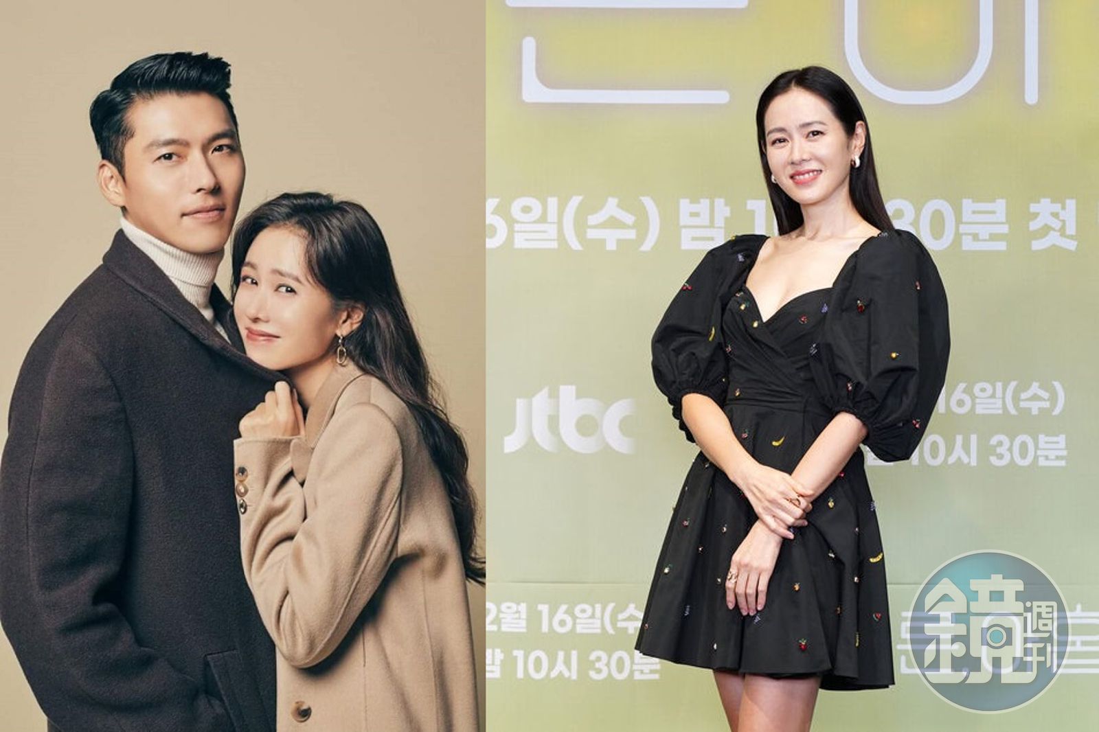 孫藝真(左圖右)和玄彬(左圖左)上週發表結婚喜訊,她今出席《三十九》記者會,臉上洋溢著幸福。(左圖Netflix提供,右圖翻攝自OSEN)發布時間:2022.02.16 14:22 臺北時間