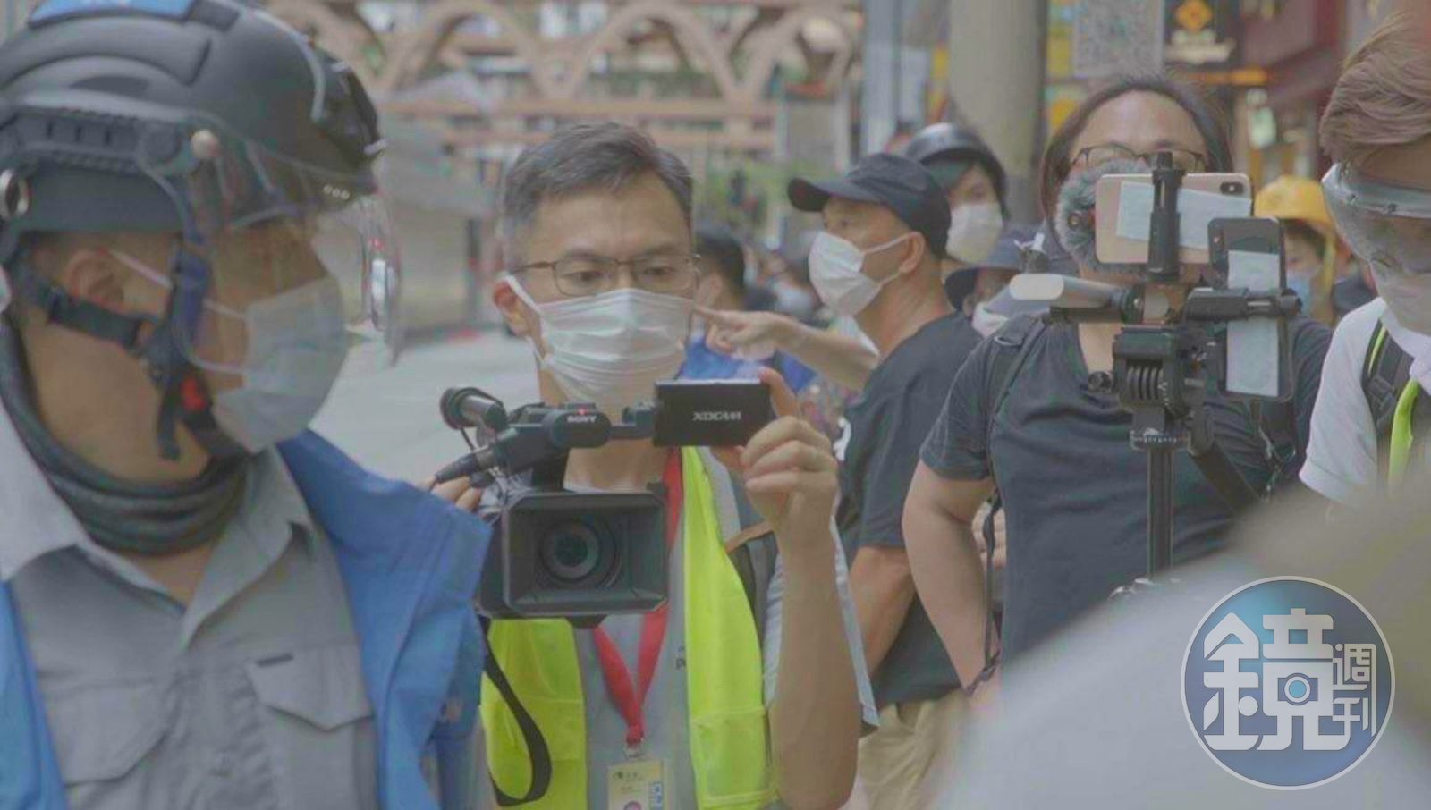 拍攝運動場面時周冠威有基本保護:戴上頭盔、全面罩,穿代表記者身份的螢光背心,但也遇過危險。「我中過警方驅趕群眾的藍色水柱、 胡椒彈、橡膠子彈,可是我相信這都是意外,並不是刻意要射我。」有一次拍運動中「守護孩子行動」創辦人、年過七旬的陳伯在街頭勸警方停用武力,混亂間遭鎮暴警察蠻力推撞,陳伯跌坐在地、周冠威的攝影機跟著猛烈晃動,這段畫面也放入影片中。