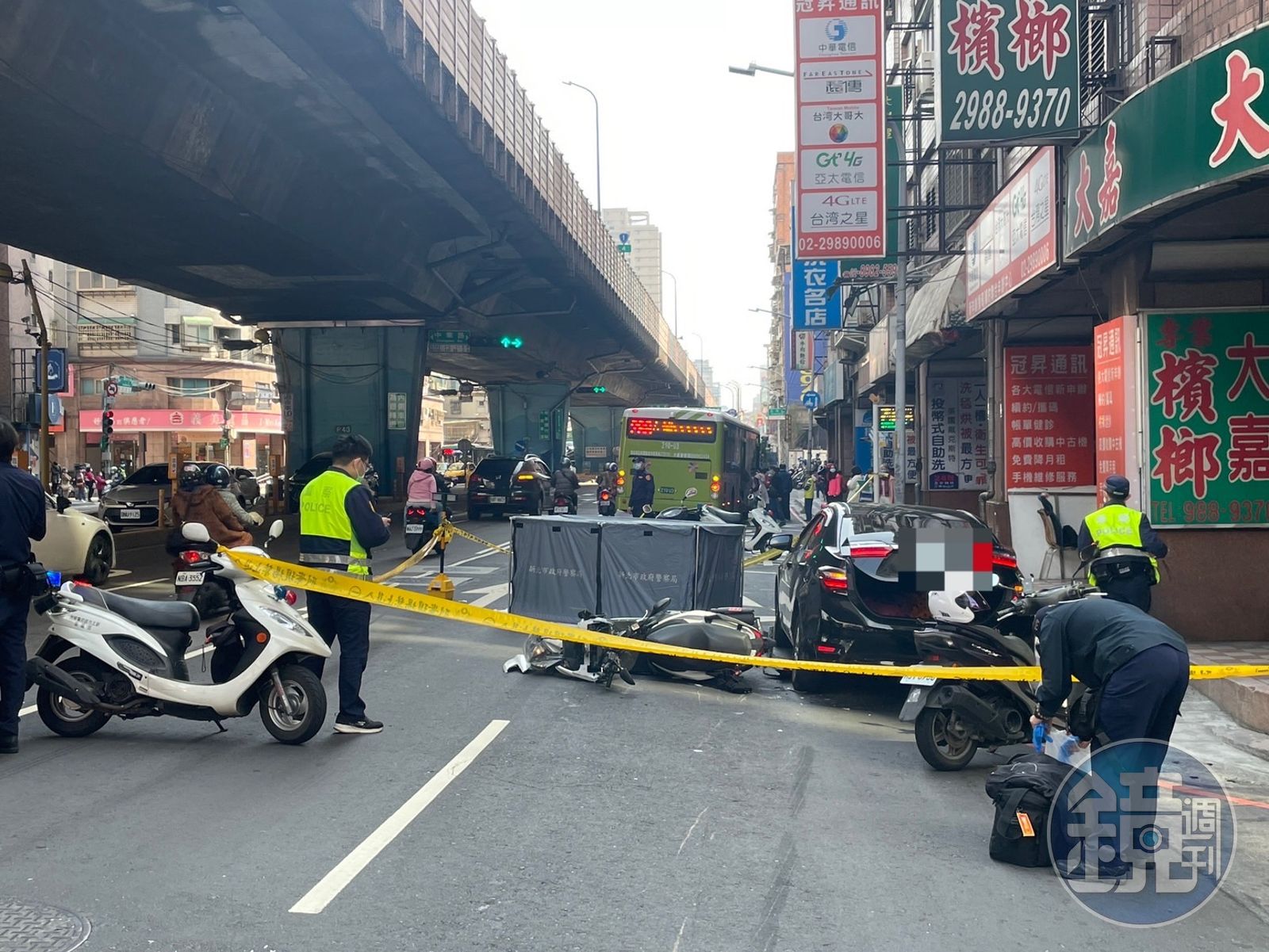 轄區警方獲報後趕抵現場,隨後拉起封鎖線採證,調閱路口監視器畫面發現,林男從違停紅線的黑色汽車駕駛座上準備下車,但他突然打開駕駛座車門的動作,疑造成機車騎士閃避不及不慎摔車,結果被後方行駛而來的砂石車輾過,林當場無生命跡象。