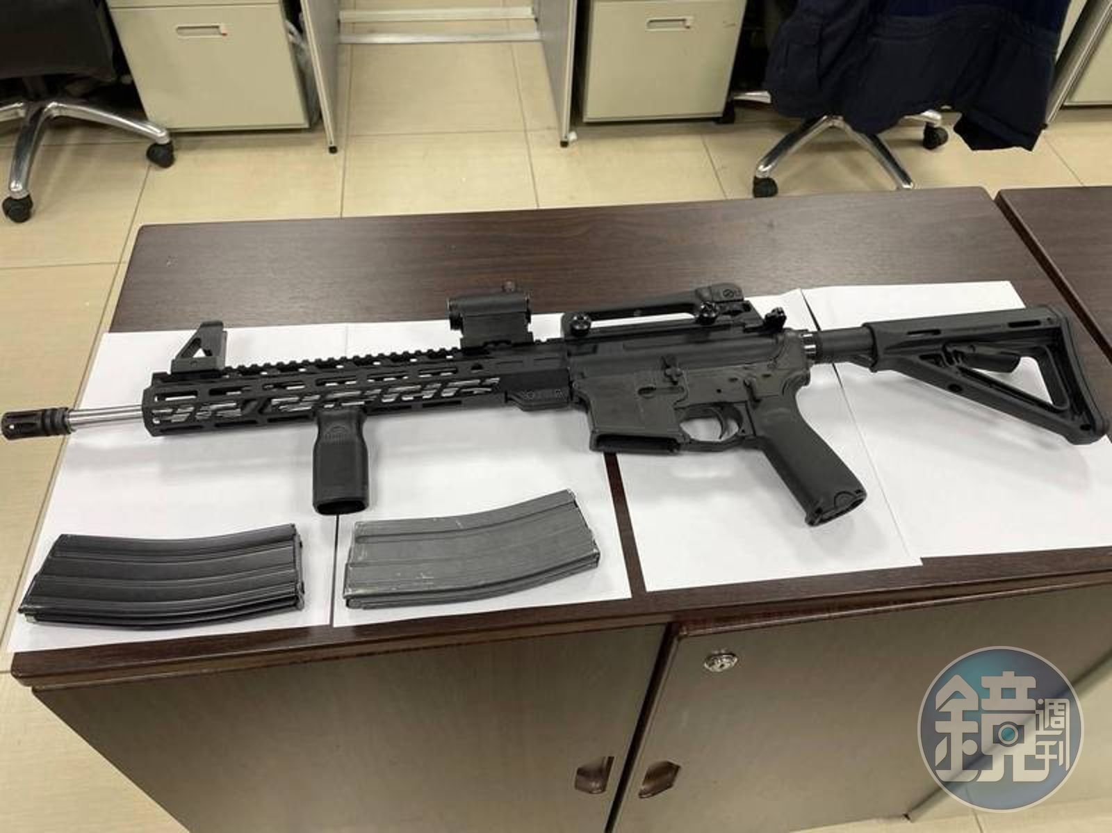 目擊者指出,今天清晨5點多,天才微微亮,一名男子持長槍在屏東縣東港鎮中正路二段一棟民宅前瘋狂掃射,嫌犯作案後,立刻搭車逃逸,警方5點24分獲報,立刻封鎖現場蒐證,只見該戶民宅鐵門彈痕累累,地上查獲20個彈殼,幸無人傷亡。
