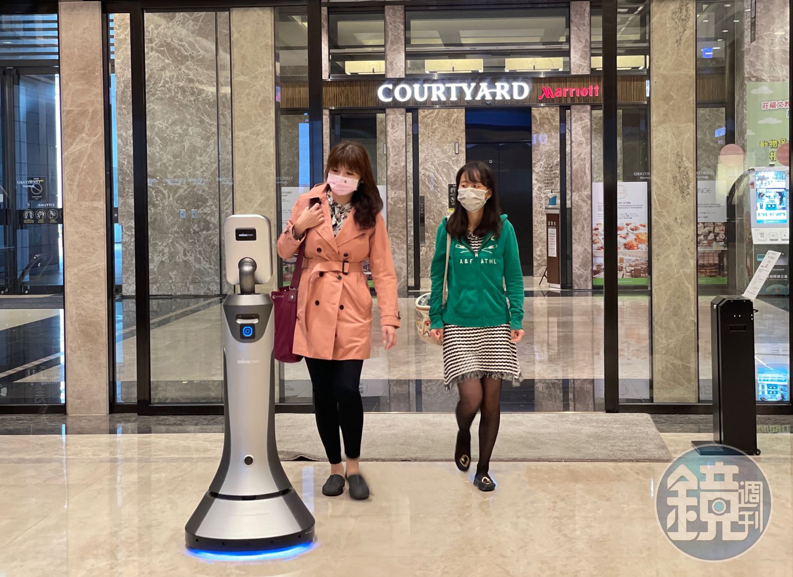 舉例來說,清消機器人可24小時於館內各處進行定時定點清消作業,用高規格防疫標準,一次可做到紫外線消毒、乾化清潔等多重作業,讓場域更安全;送餐機器人負責餐點輸送,服務人員能更有時間跟客戶互動、說菜,增進感情;接待機器人則可提供客人旅遊周邊地圖,告訴客人哪裡好吃好玩,還有停車、交通資訊,甚至指引客人至館內及停車場電梯等。