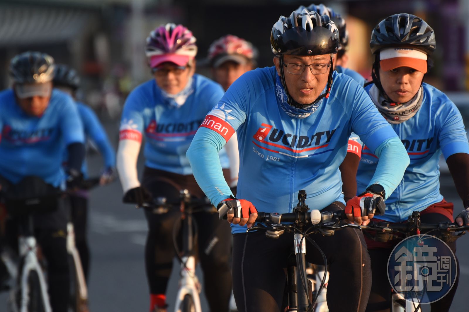 璨揚內部的運動風氣鼎盛,疫情爆發前,全公司曾有50位員工組隊參與北高一日雙塔騎行,「這樣你就知道他們愛到什麼程度。可是你一定要經過日常體能訓練,即使再厲害的人,都要經過團隊練習,我才會讓你去。」