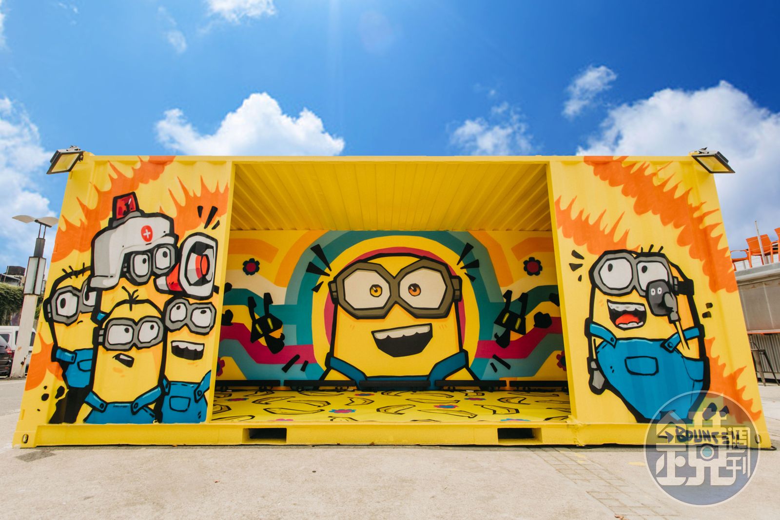 連續3天不分晴雨日曬,完成20呎大型貨櫃內外部皆是《小小兵2:格魯的崛起》主題的電影塗鴉彩繪貨櫃,即日起至8月14日將陳列在大稻埕碼頭貨櫃市集(五號水門)。白天跟夜晚都有不同的氣氛,晚上還可以化身為小小兵舞廳!