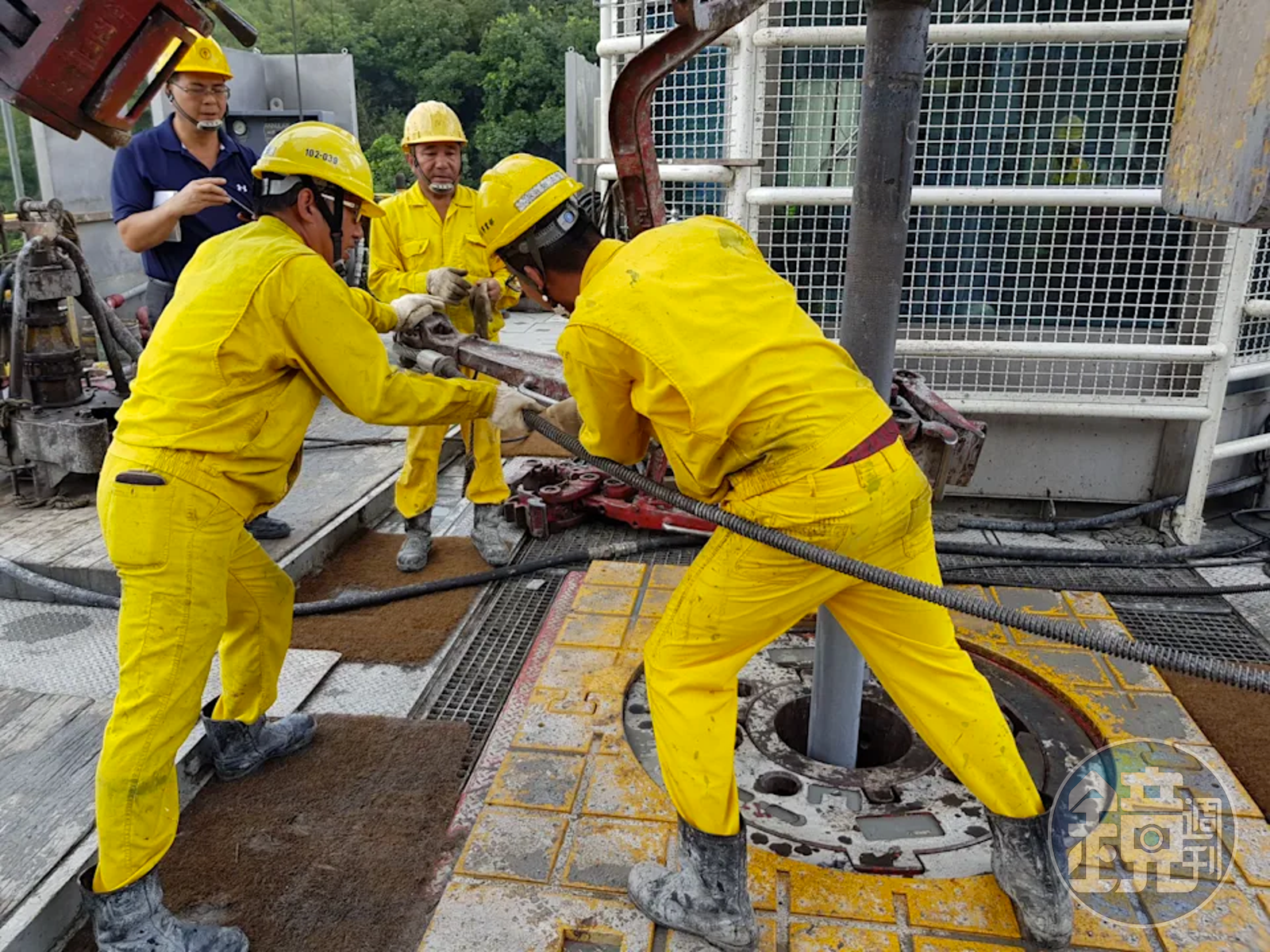 據規定,工作人員推送上扣鉗於立根大接頭之母接頭上,另一名則推送退扣鉗於公接頭上,工作人員操作退扣鉗咬合後,須先向井心工作平台操作室人員以眼神或點頭示意,並退到安全位置後,操作室人員始得操作鑽機驅動轉盤進行退鬆絲扣作業。