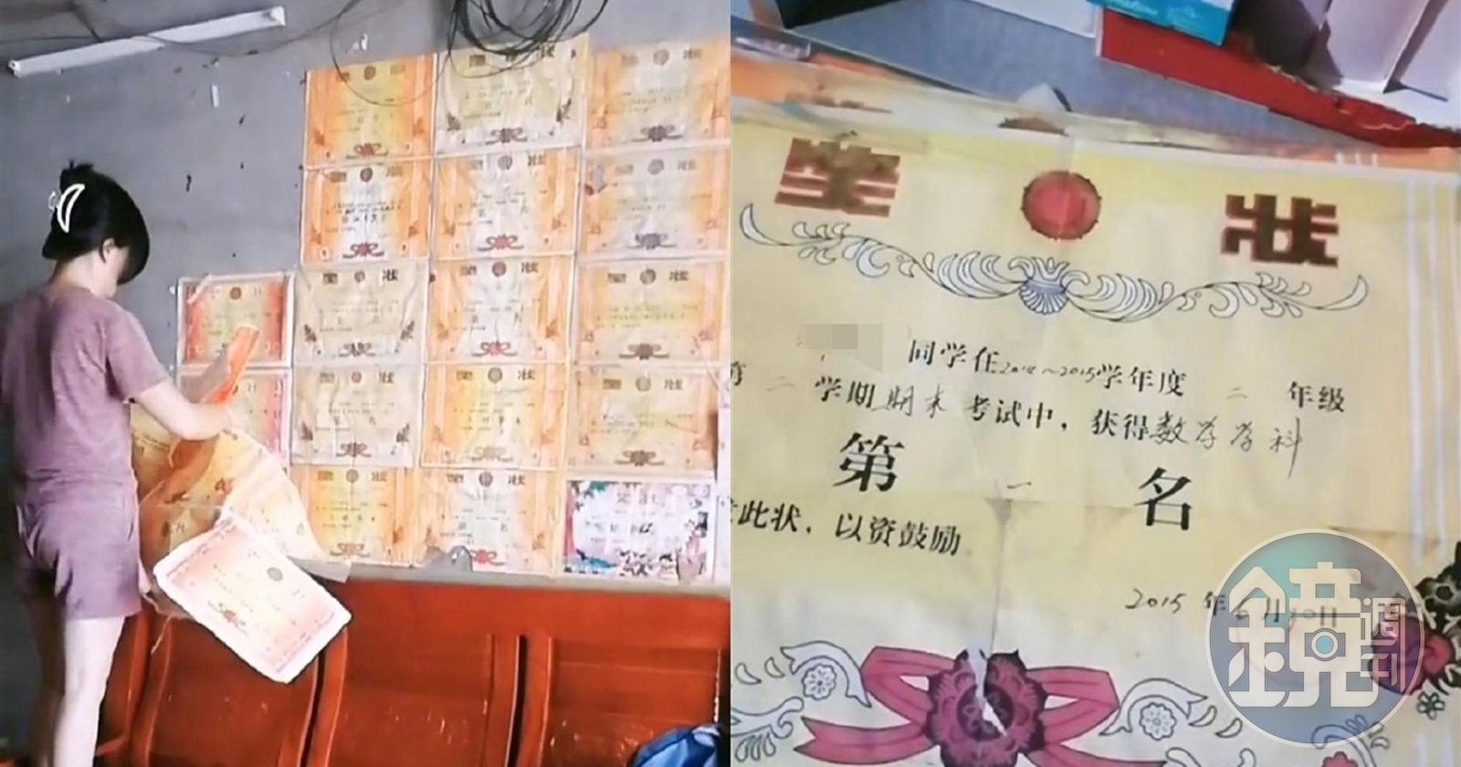 據《新聞晨報》報導,安徽阜陽一名呂姓女子因兒子在滿分750的中考,只考了523分,最後錄取一所私立高中,2日她發布一支影片,只見她氣得將兒子自小學到國中得到的獎狀,從牆上全撕下來,並崩潰表示「滿牆的獎狀也沒能換取一個高中,到底是哪一步走錯了?」引發網友熱議,呂女還稱,孩子的爸不打算讓孩子繼續上學了。