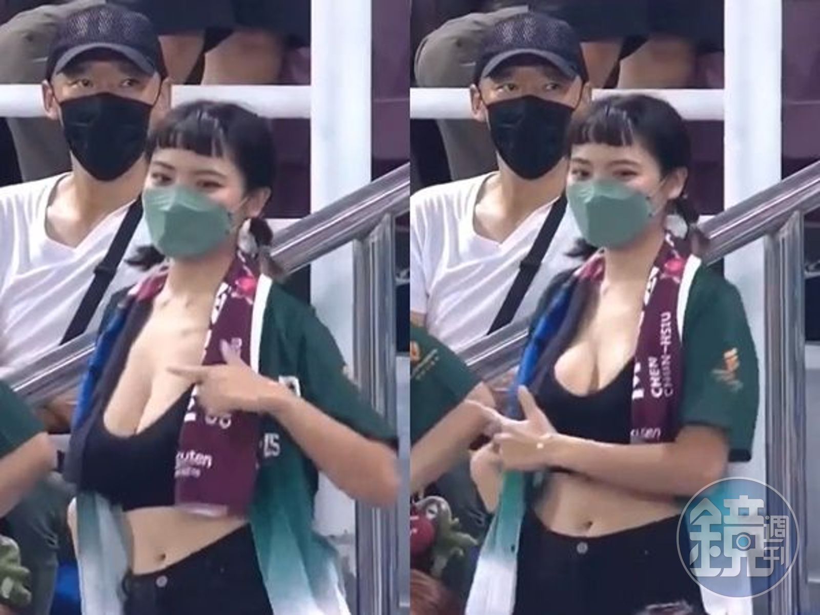 臉書粉絲專頁《賽場嬌點 Sport Beauties》,日前分享在桃園球場的一支場外影片,當天為樂天桃猿對上味全龍的比賽,有一位辮子妹在觀眾席隨著音樂,為樂天桃猿跳應援舞,她身穿一件黑色運動內衣,打扮相當清涼,豐滿好身材呼之欲出,胸前更是波濤洶湧、不斷抖動,導播來回拍攝好幾遍,這支47秒影片在臉書吸引超過35萬人觀看,引起網友暴動。