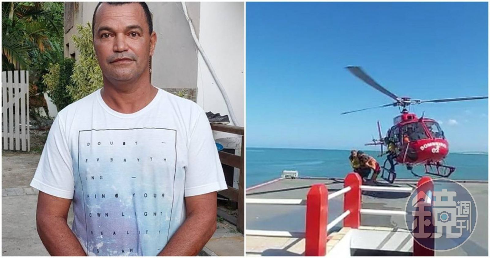 根據《太陽報》報導,巴西一名51歲男子內迪(Nelson Nedy),是一名園丁,8日他在里約熱內盧格魯馬里海灘(Grumari)的岩石上觀浪之際,慘被大浪捲到海中,事後他跟著海流漂到4.8公里遠的地方,最後到了荒涼的帕爾馬斯島(Palmas)。