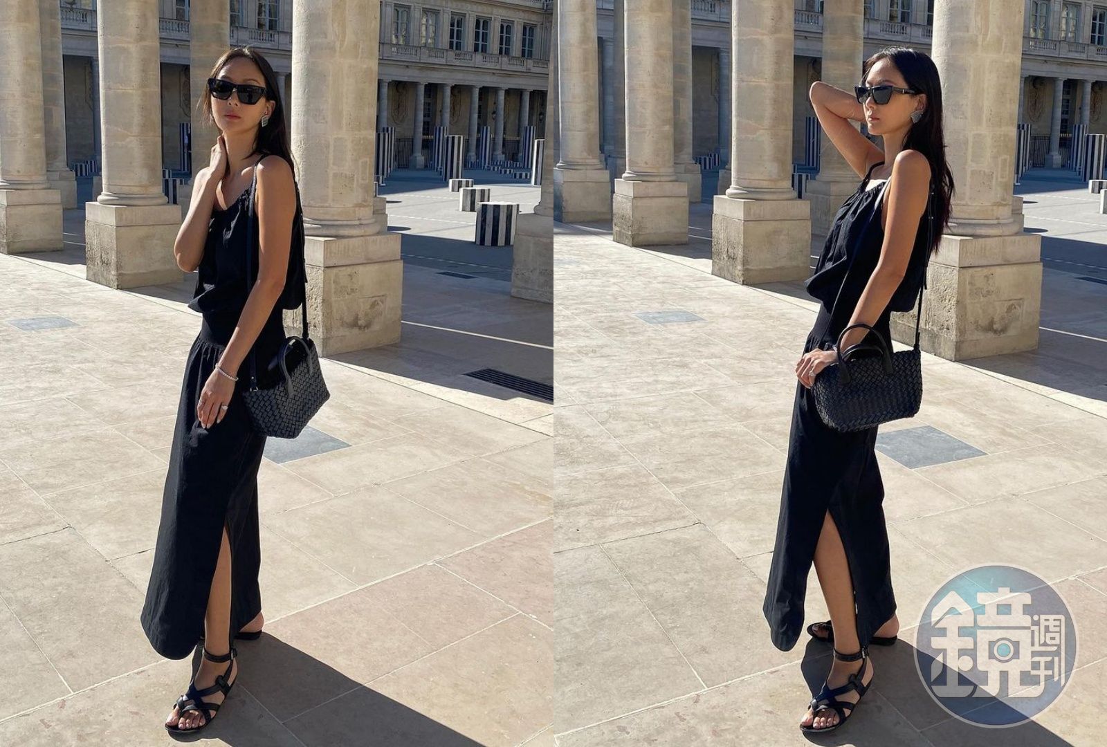 工作結束之後,徜徉在巴黎的浪漫與陽光中的微風廣場董娘孫芸芸,選用什麼樣的包款陪伴她的歐洲之旅呢?答案是:BOTTEGA VENETA(以下簡稱BV)的Mini Cabat。她穿著全黑的連身洋裝、腳踩黑色涼鞋,搭配的迷你尺寸Cabat也是黑色,以一種簡潔有力的酷美風格,沉浸在異國風情之中。