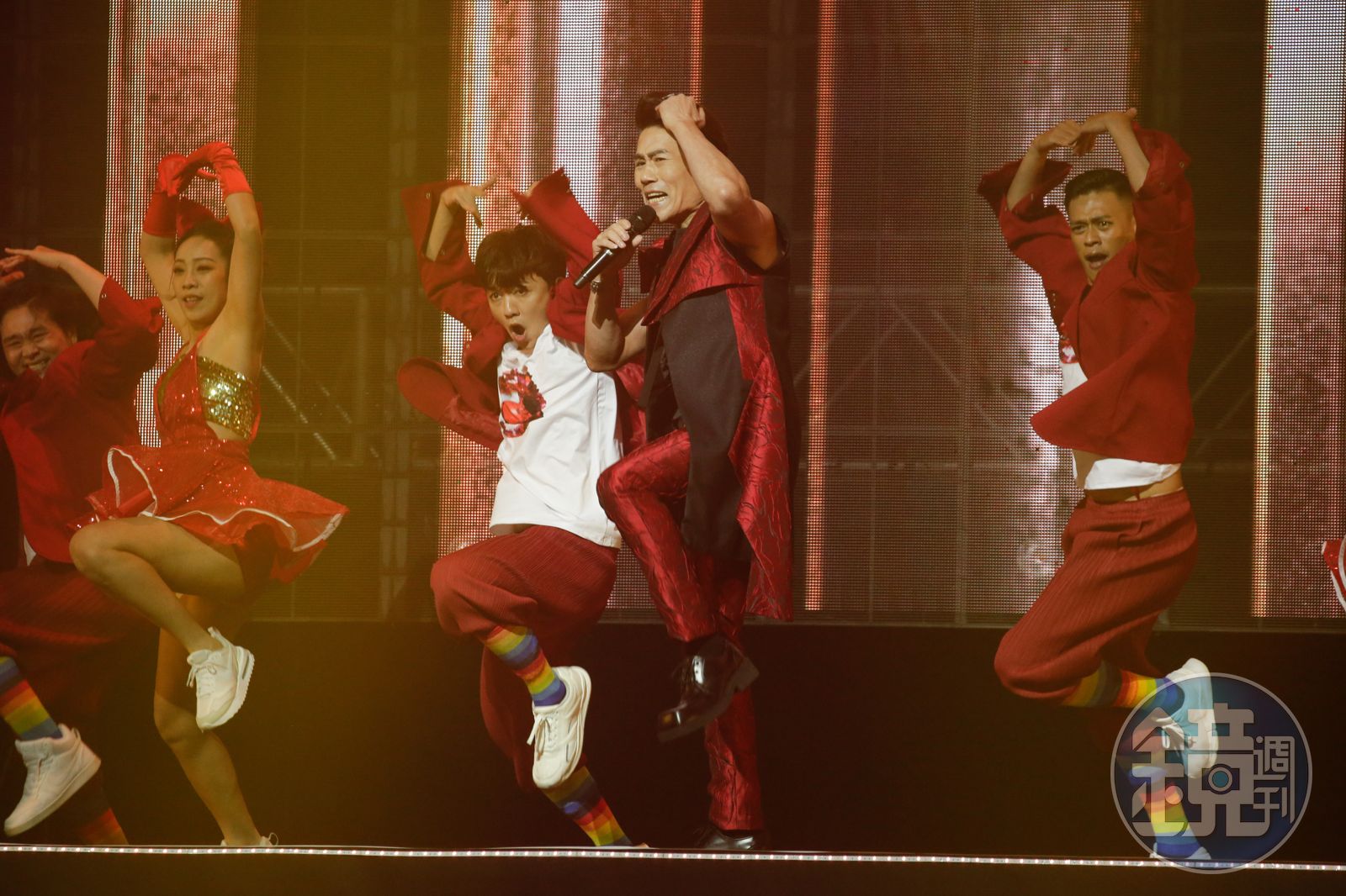 開場時,羅時豐一身黑紅勁裝、秀出結實臂膀,一連帶來〈歡喜來恰恰〉〈愛情恰恰〉和〈含淚跳恰恰〉等舞曲,重現當年華麗歌廳秀,54歲的他自嘲根本是被導演整,笑說:「跑步、跳舞和升降梯對我們半百老男人來說是很累的,比『買可樂』(Make Love)還累你知道嗎?」