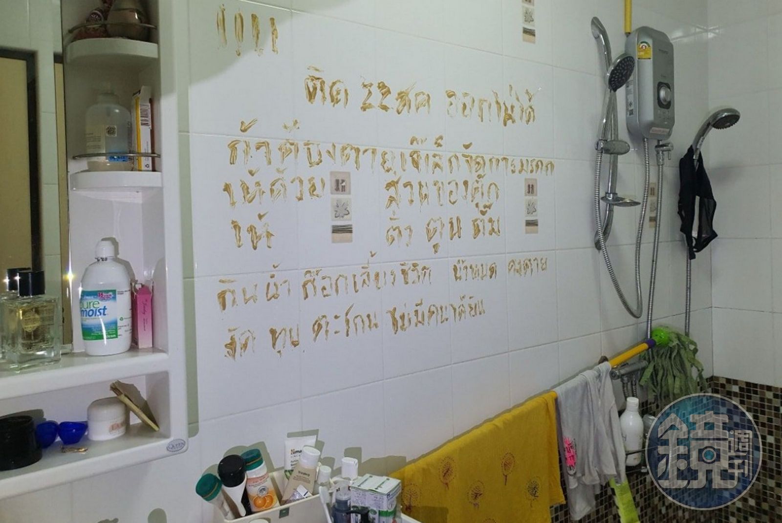 脫困後眾人發現婦人因過於絕望,用黃色乳霜在浴室牆壁上留下遺言,且3天來只能喝自來水維生,緊急將奄奄一息的婦人送醫治療,目前沒有生命危險。