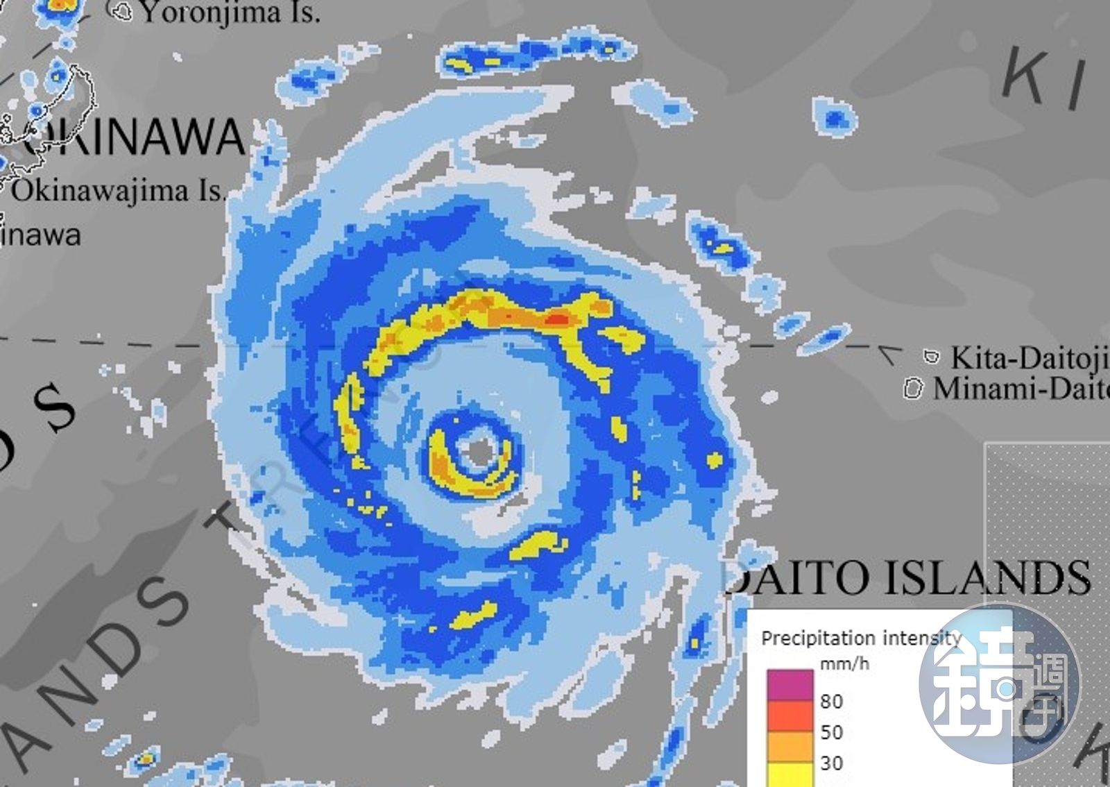 「天氣風險」吳聖宇指出,今晚起隨軒嵐諾以下墜球的路徑逐漸趨向台灣以東,颱風外圍的偏北風範圍接近,天氣型態也將有所變化。目前軒嵐諾颱風位於琉球那霸以東,過去一段時間依然是以非常快的速度向西到西南西的方向移動,結構完整,颱風眼清晰可見,強度是今年到目前為止的11個颱風之中最強的一個。