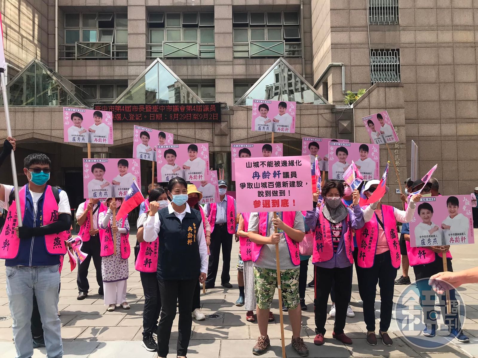 她強調,自己的民調是最高的,今率領支持者,喊出口號「山城不能被邊緣化」,前往台中市選委會,宣布將以無黨籍登記參選。