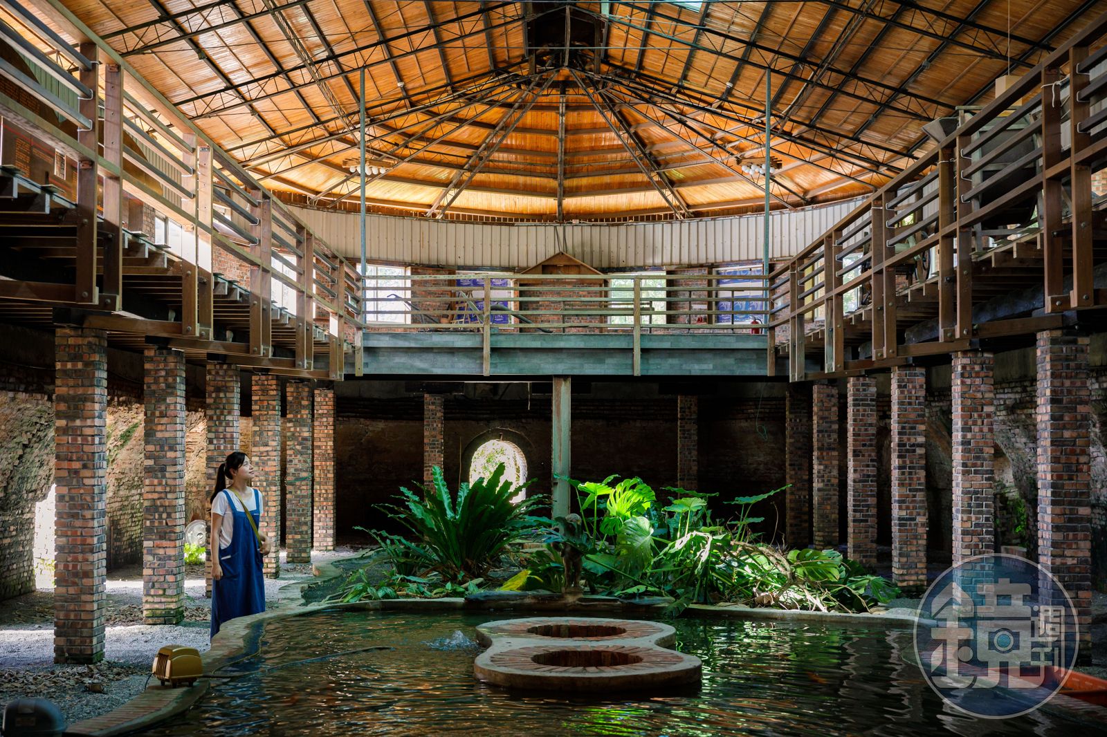 設計師發揮巧思將廢棄的隧道窯改建成民宿。窯廠目前已不再製窯,但建築仍保存下來,並被花蓮縣文化局評鑑為歷史建物。如今的富南窯場保存有東台灣碩果僅存的八卦窯,走在偌大的園區裡,第三代接班人徐尉傑向我們細細導覽著窯廠歷史。「八卦窯最早由德國人發明,日本人引進,仔細看建築上面的角度,融入了台灣民間信仰。」聽他娓娓道來,八卦窯為橢圓連續性輪窯,窯廠火光繁盛,為減少意外發生,早期台灣人特別將建築外牆刻出角度,取八卦鎮壓之意,心安,做事自然平安。