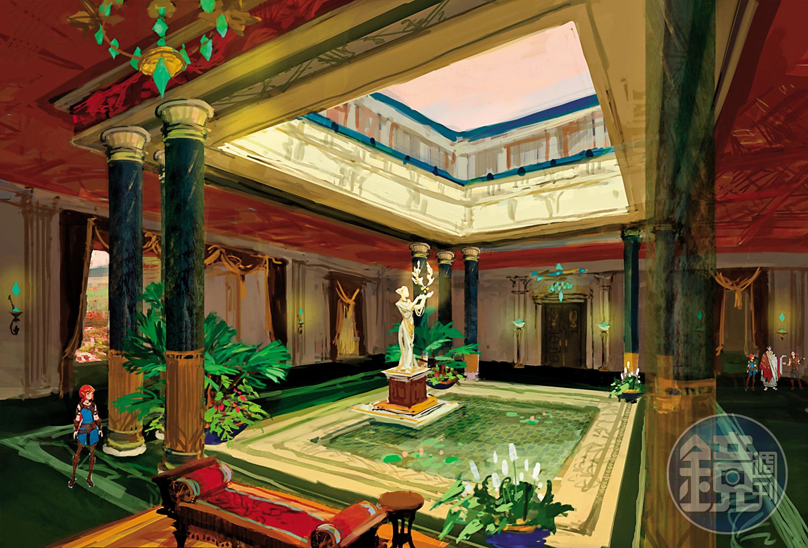 《失落迷城》冒險舞台「亞弗斯」融入古典希臘與羅馬帝國的特色。圖為2D的美術設定。(艾可米遊戲提供)發布時間:2022.09.27 05:58 臺北時間