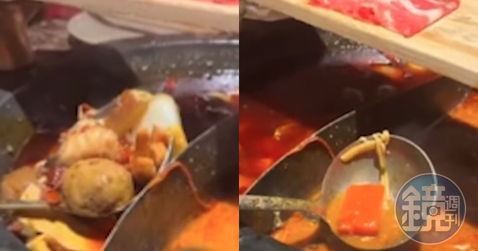 中國一間連鎖火鍋店拿吃剩的鍋底給客人,店家稱是17歲的新員工端錯了。(翻攝自微博)