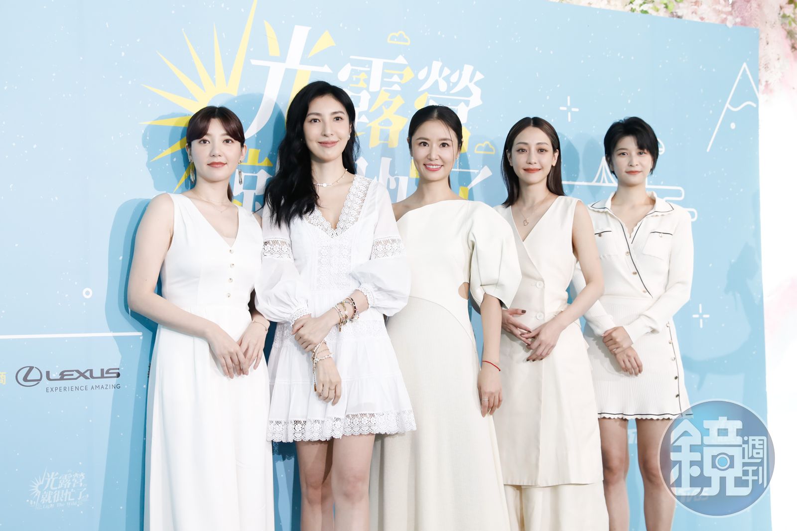 郭雪芙(左起)、楊謹華、林心如、謝欣穎及江怡蓉出席《光露營就很忙》記者會。