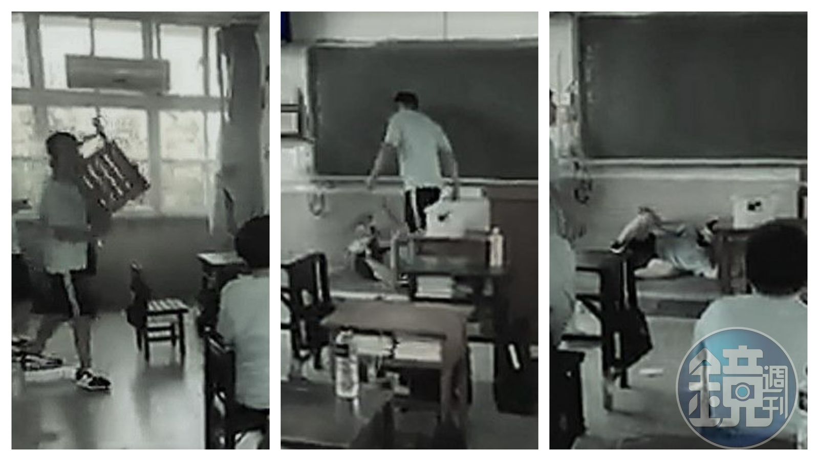 暴力衝突瞬間變成3打1的圍毆情勢,後面加入的2名同學徒手痛毆,而另1人更拿椅子砸向受害者,眼見對方都已倒地後,3人疑不解氣持續拳打腳踢,而過程中並未見到有人上前制止,不是一旁冷眼看待、就是在錄影。