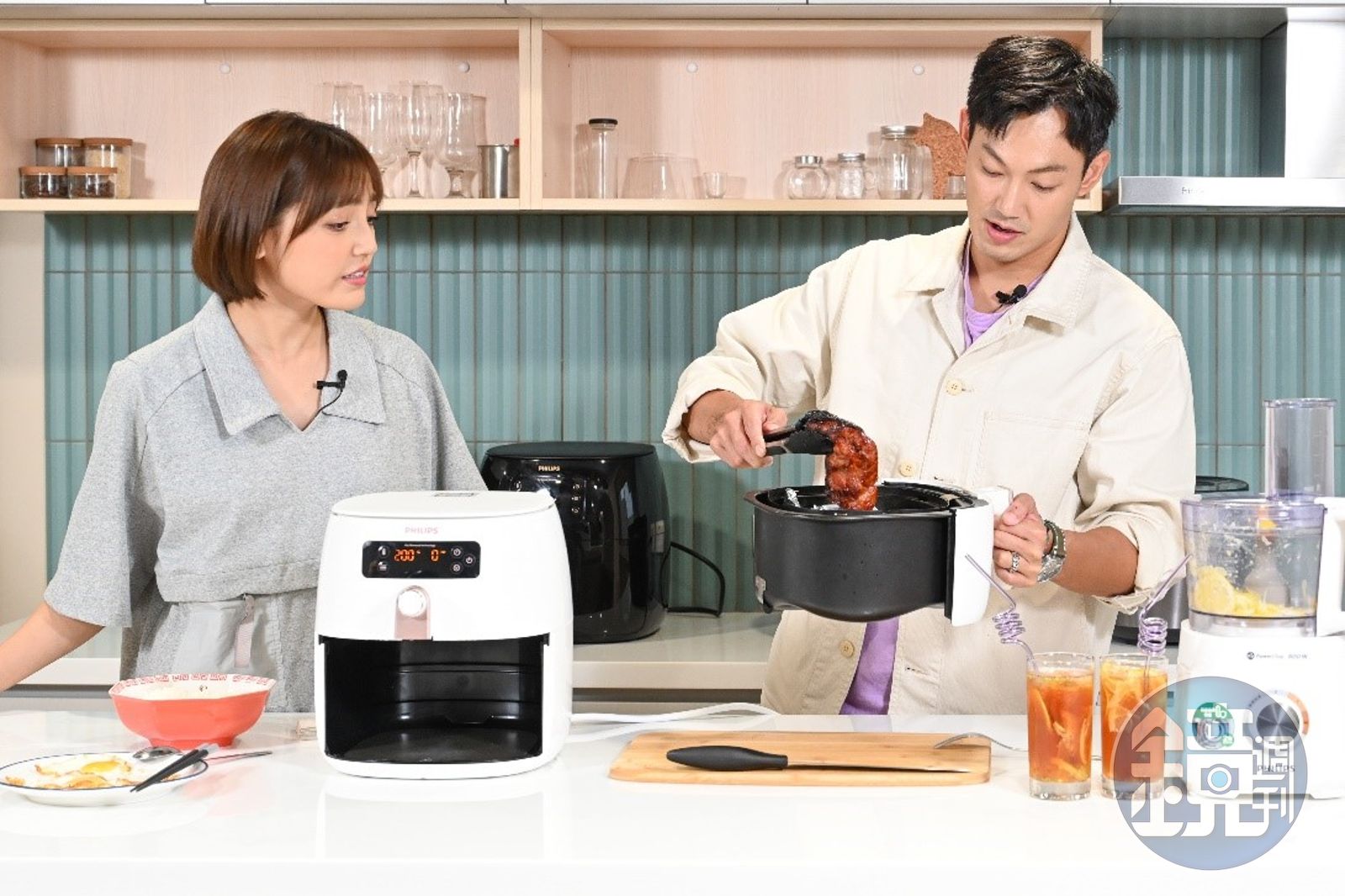 朵拉還透露曾自己做韓式炸雞失敗到「操灰搭」,但這次拍攝影片,實際使用氣炸鍋操作一次就上手,讓她對自己的廚藝信心大增,她說:「我覺得超驚艷,因為機器直接幫忙控火、設定時間,再怎麼樣都不會燒焦,很方便,我好像真的只有把東西放進去按幾個鈕,它就自己炸好了」,原來即便是料理初心者,只要靠給力家電,也能端出大師級的驚喜大菜,各國料理也難不倒。