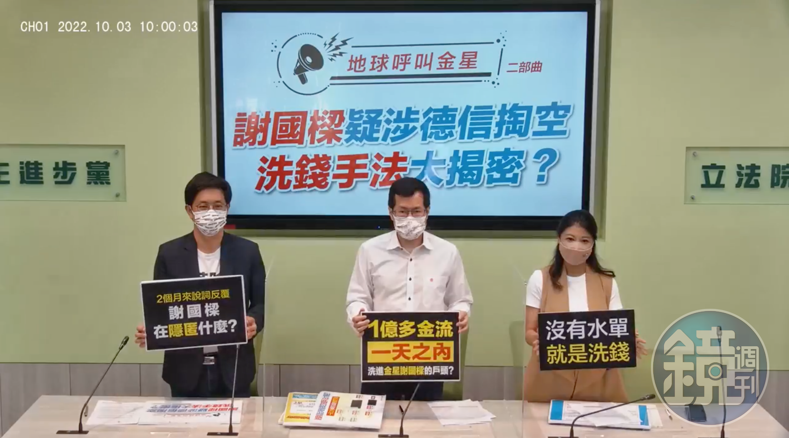 羅致政質疑,根據謝國樑說法,當時是3家公司做民間的商業借款,但3家公司的錢全部轉向金星疑有違反公司法與洗錢嫌疑,且1天內鉅額款項就迅速流動,還有現金交易,公司帳和個人帳完全混在一起。