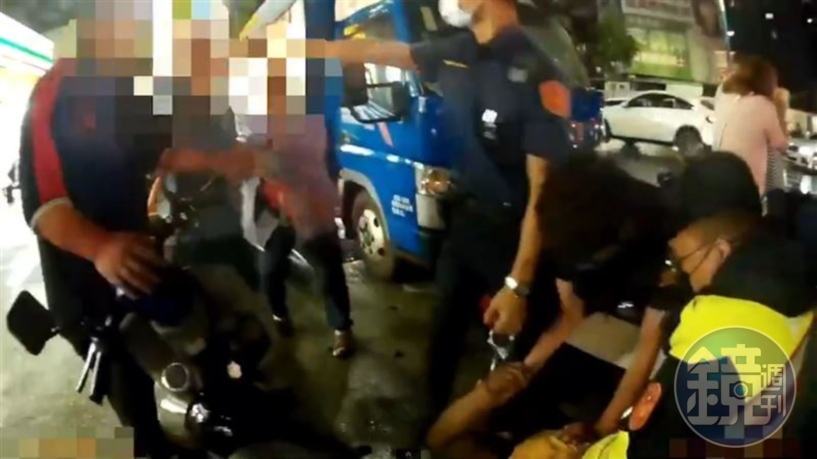 事後員警趕到現場,看見李男仍在發酒瘋狀態,除了女性親友出聲制止,多名員警也圍上前欲約制其行動,並研判李男可能會有自傷與傷人情況,亦將李男當街壓制上銬帶回警局進行保護管束。