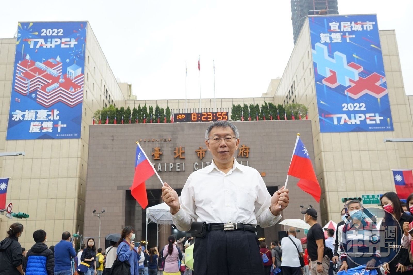 台北市政府今在府前廣場舉行國慶升旗典禮,市長柯文哲率局處首長出席,無黨籍台北市長參選人黃珊珊也帶領民眾黨北市議員參選人與會。此為柯文哲任內最後一次參與國慶,柯文哲表示,國慶日是一個讓全國可以團結凝聚的日子,不希望國慶日變成分裂的日子,每個人都有自己的意識形態,但在不同位置上,都應盡力讓台灣更團結。