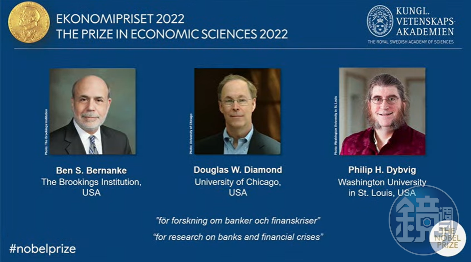 經濟學獎為諾貝爾獎項中,最後頒發的獎項,本屆諾貝爾所有得獎者名單名單如下: