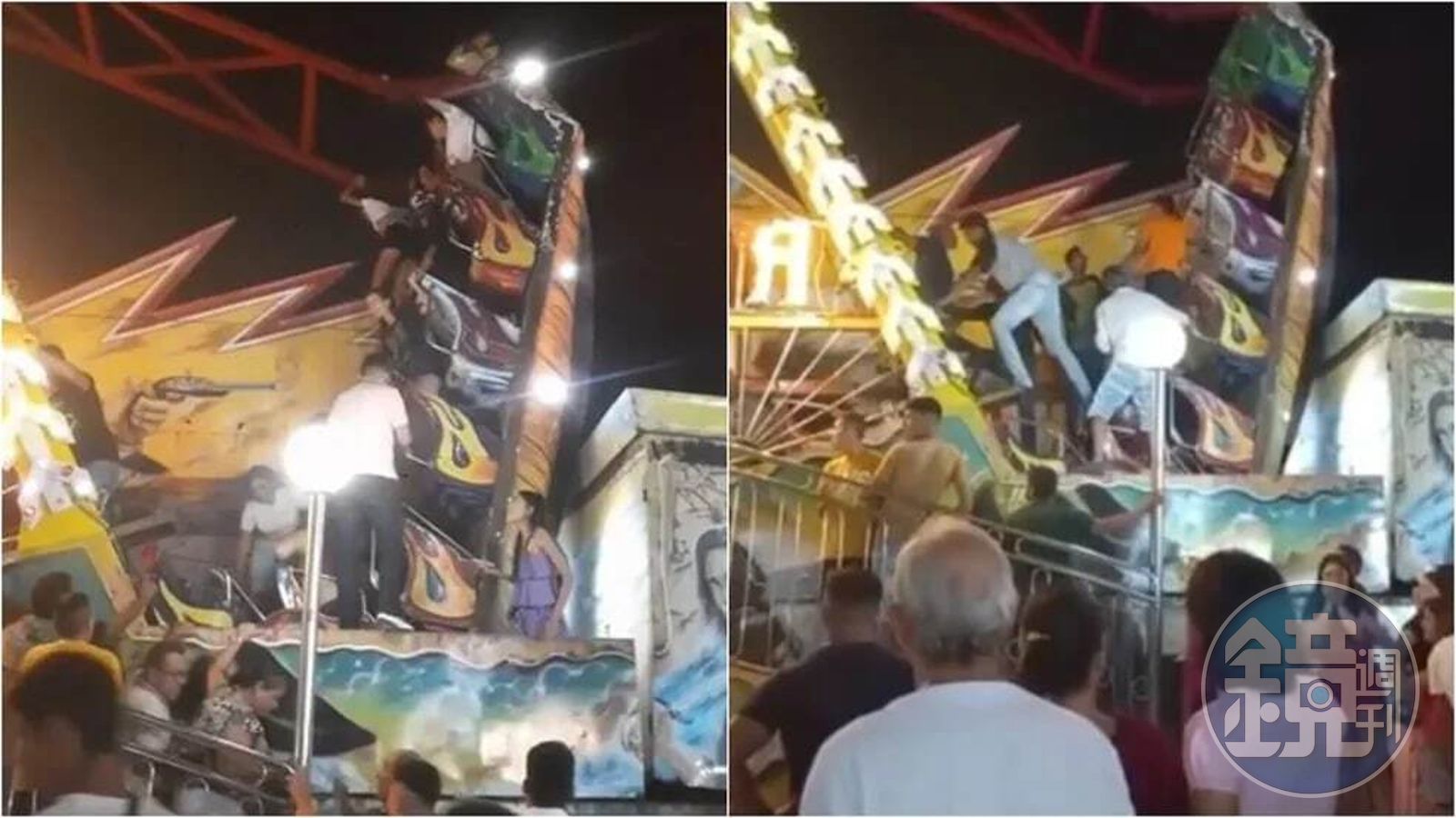 據英國《鏡報》報導,事發在本月9日晚上,當時有許多遊客正在乘坐這個刺激的海盜船,卻沒想到運轉到一半,卻突然從中間斷成兩截,導致遊客們重摔,最後要攀爬機具的桿子與欄杆才能脫逃。但更恐怖的是,海盜船斷成兩截後,破碎的機具變成金屬片,頓時間飛濺四方,更有遊客因此被射中。